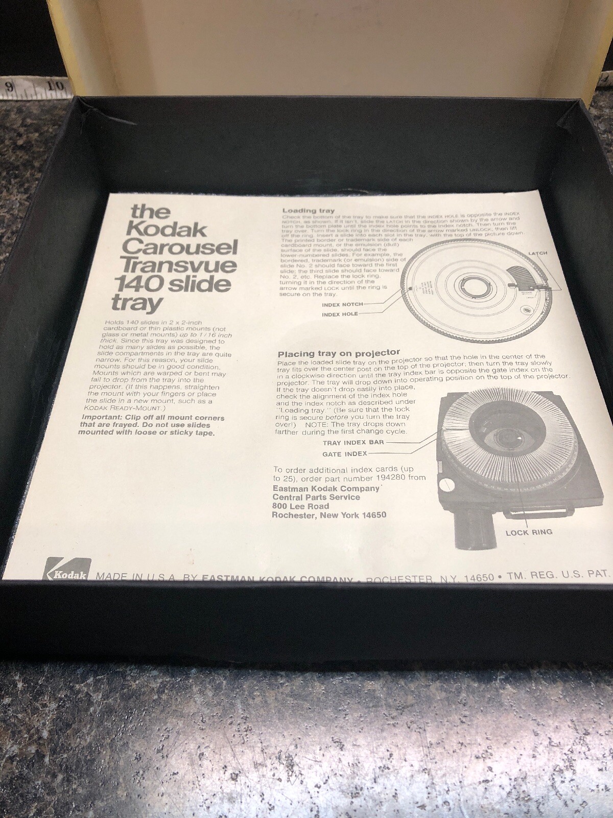 Vintage Kodak carousel transvue 140 slide tray With Original Box And Paperwork.