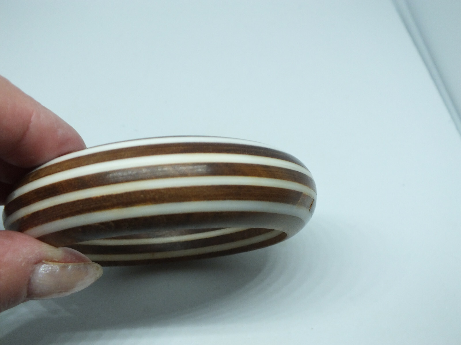 как выглядит Beautiful Bangle Bracelet Brown White Stripe Plastic 3/4" Wide x 2 5/8" Across фото
