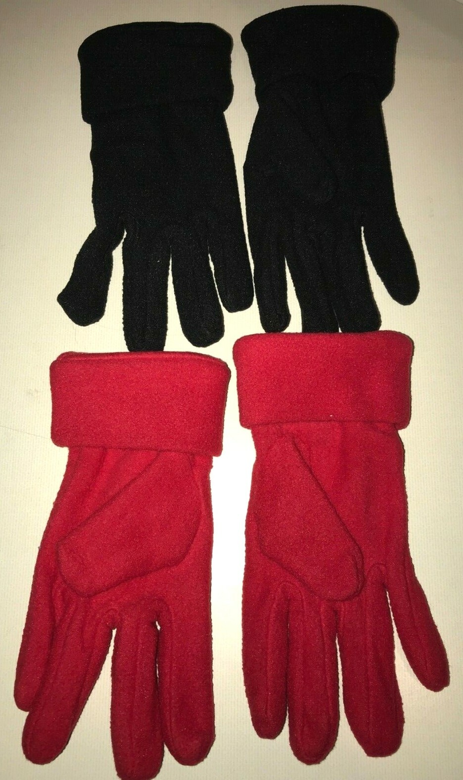 2 pair GIRLS NEW NWOT GLOVES fleece red black cuffs back one size fits most SOFT