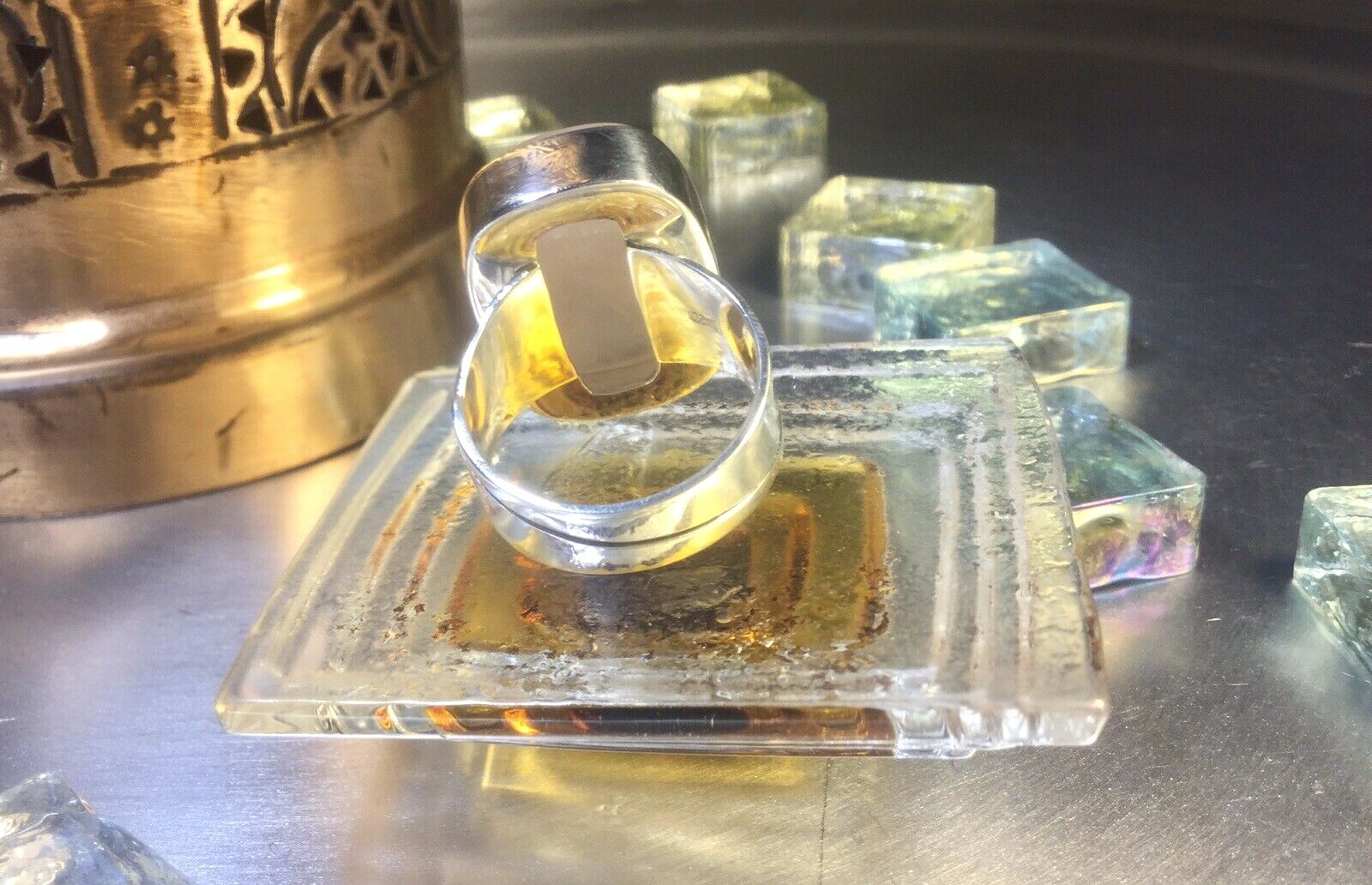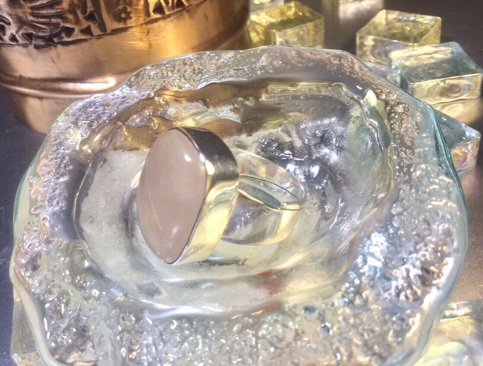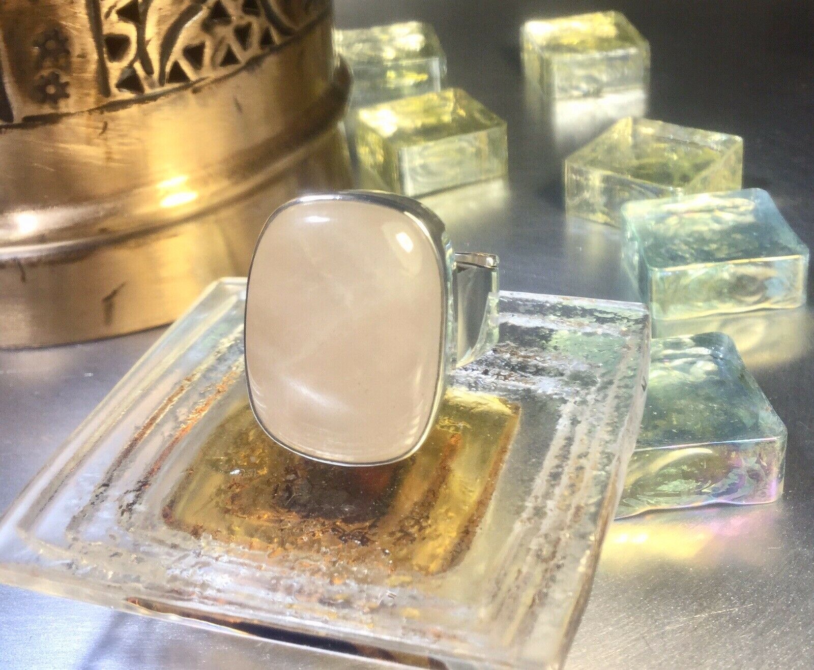Genuine 925 Sterling Silver Large Natural Rose Quartz Adjustable Ring Size 8.5