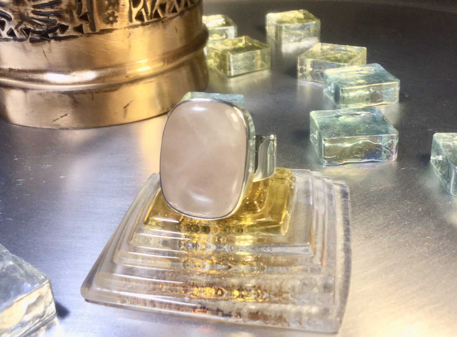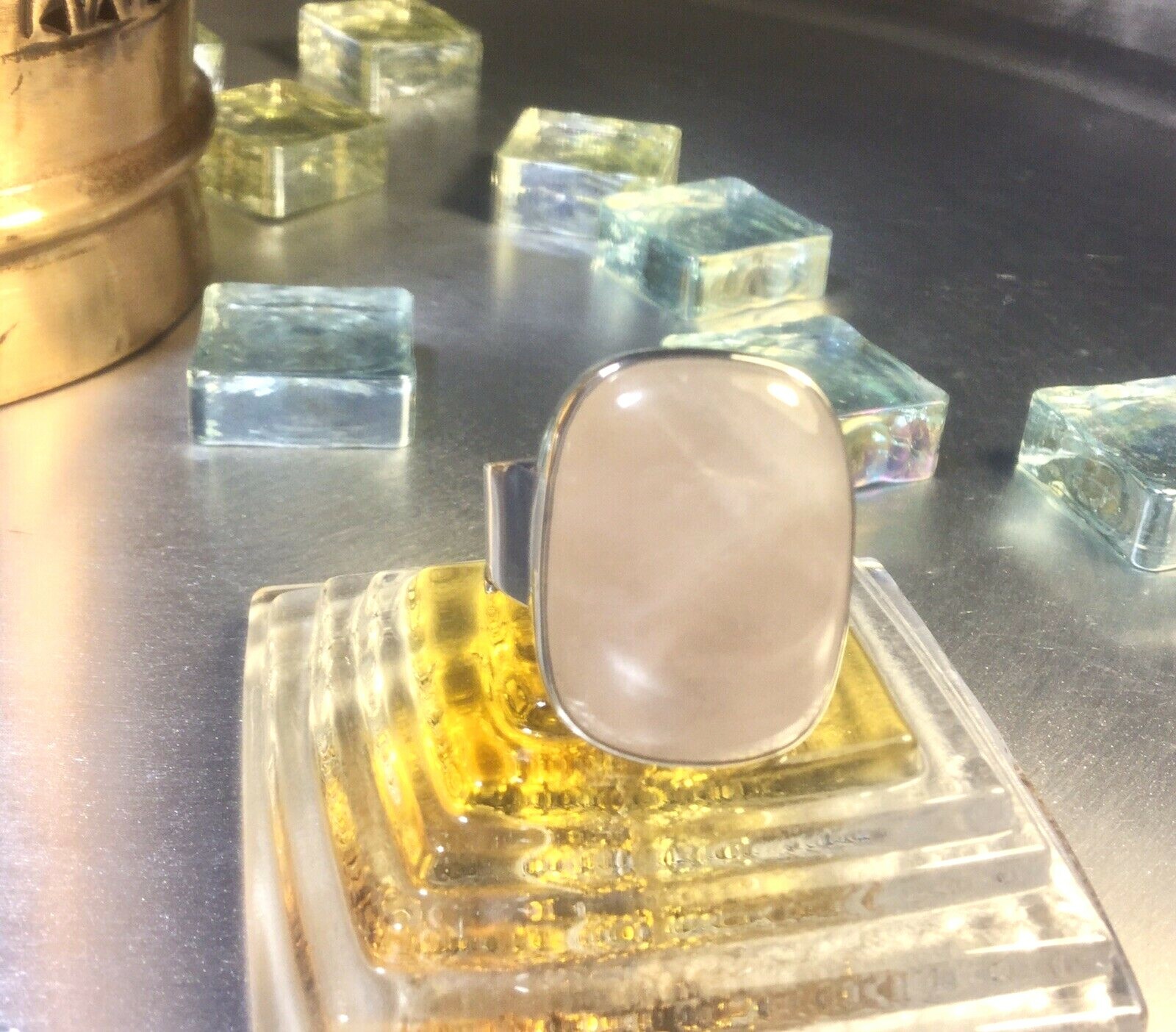 как выглядит Genuine 925 Sterling Silver Large Natural Rose Quartz Adjustable Ring Size 8.5 фото