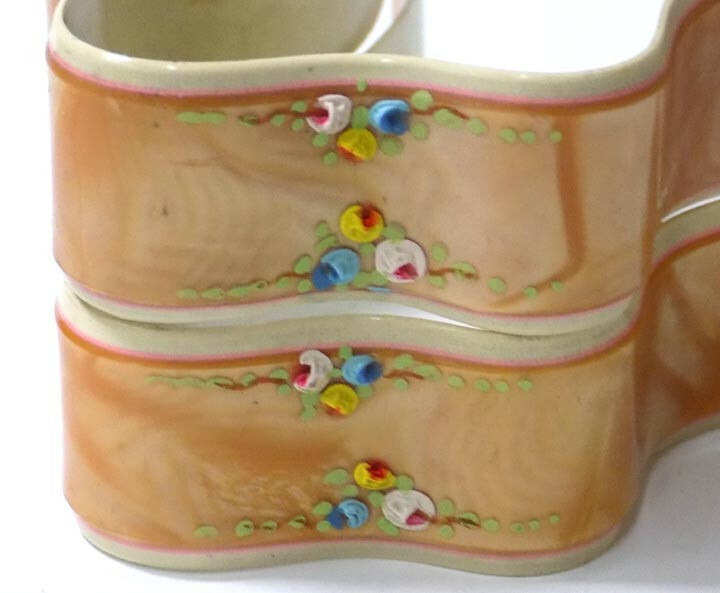 как выглядит Vintage Gold Celluloid Baby Blanket Clips Raised Hand Painted Flowers фото