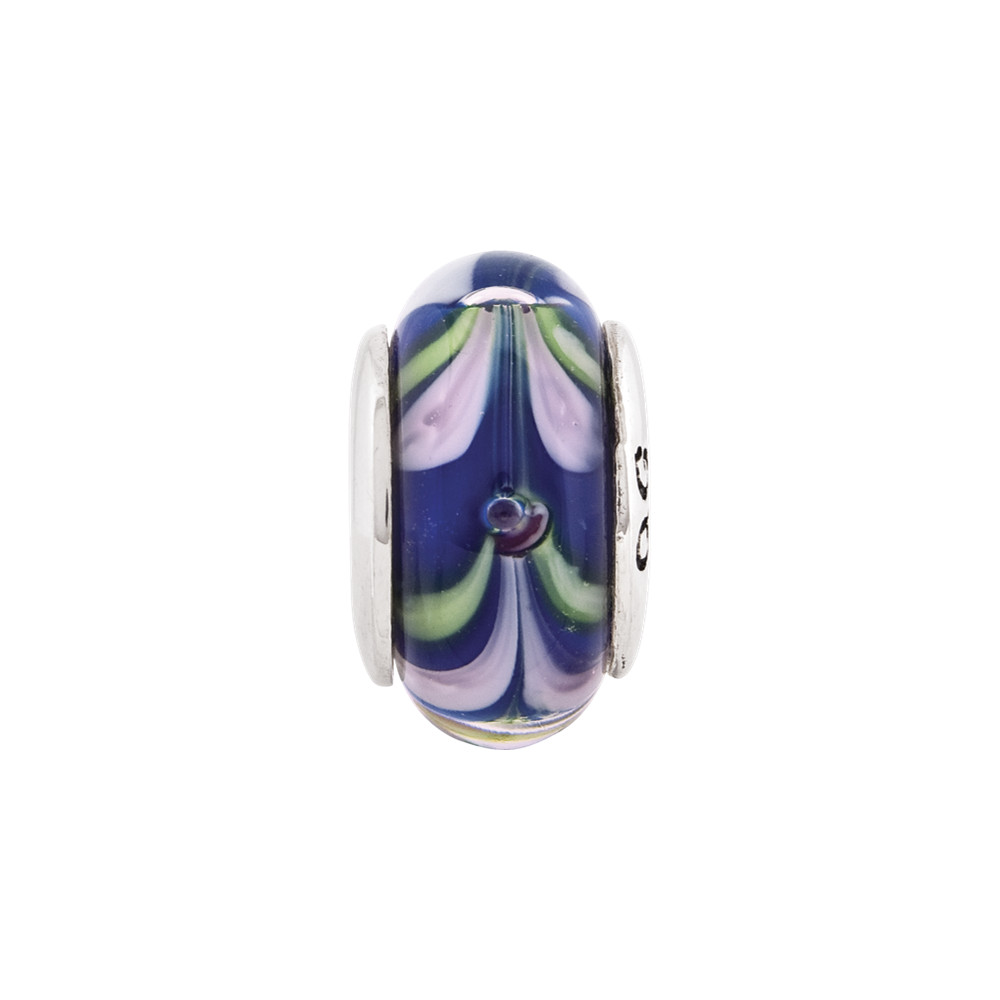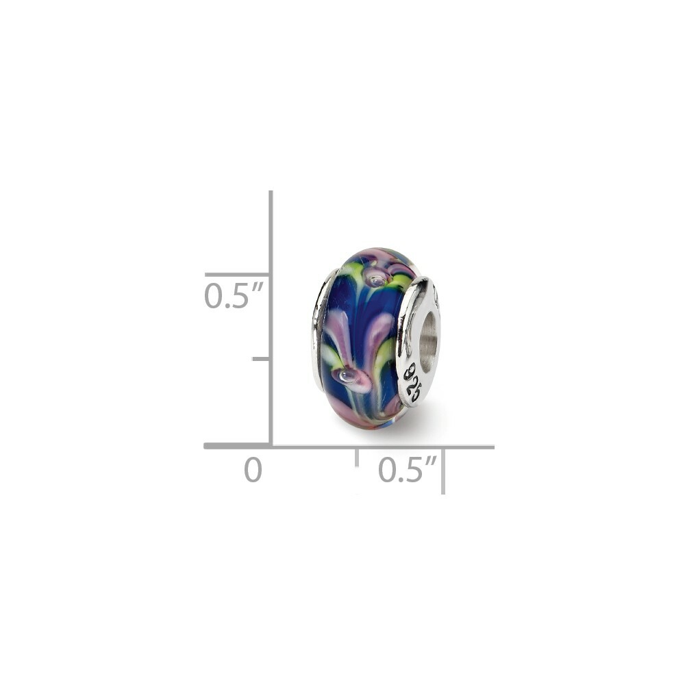как выглядит Blue Pink Hand Blown Glass Bead .925 Sterling Silver Antiqued Reflection Beads фото