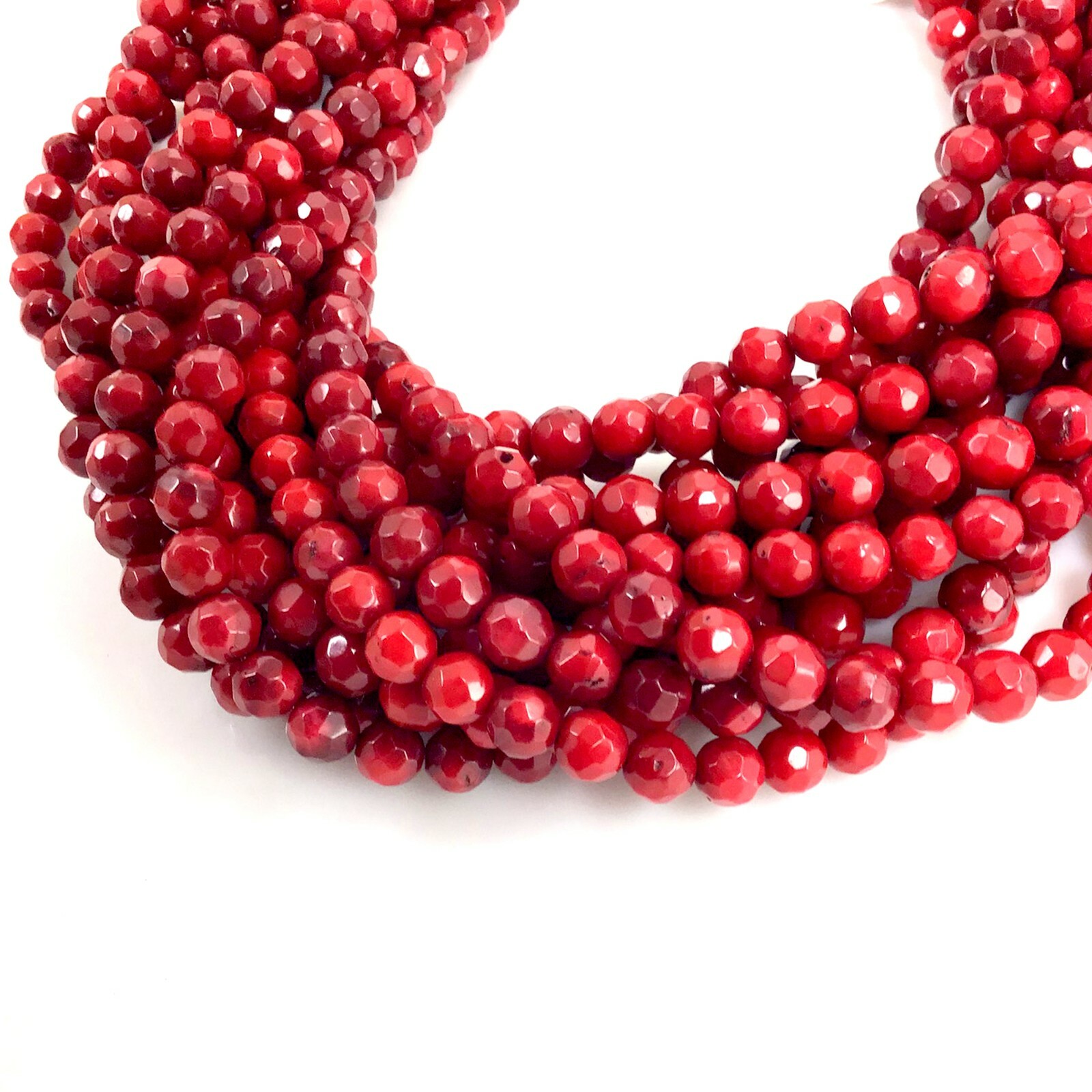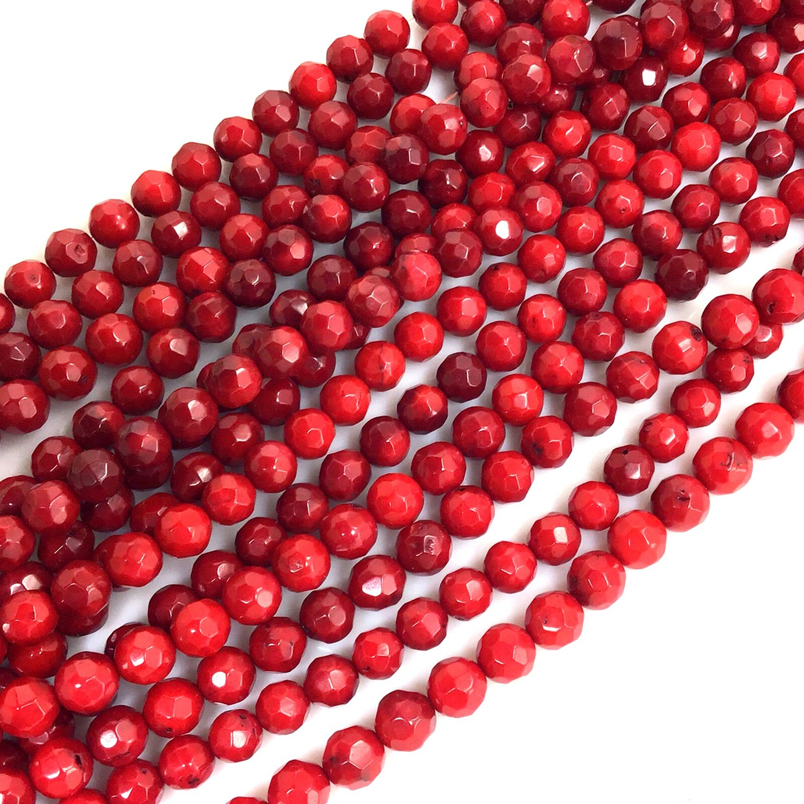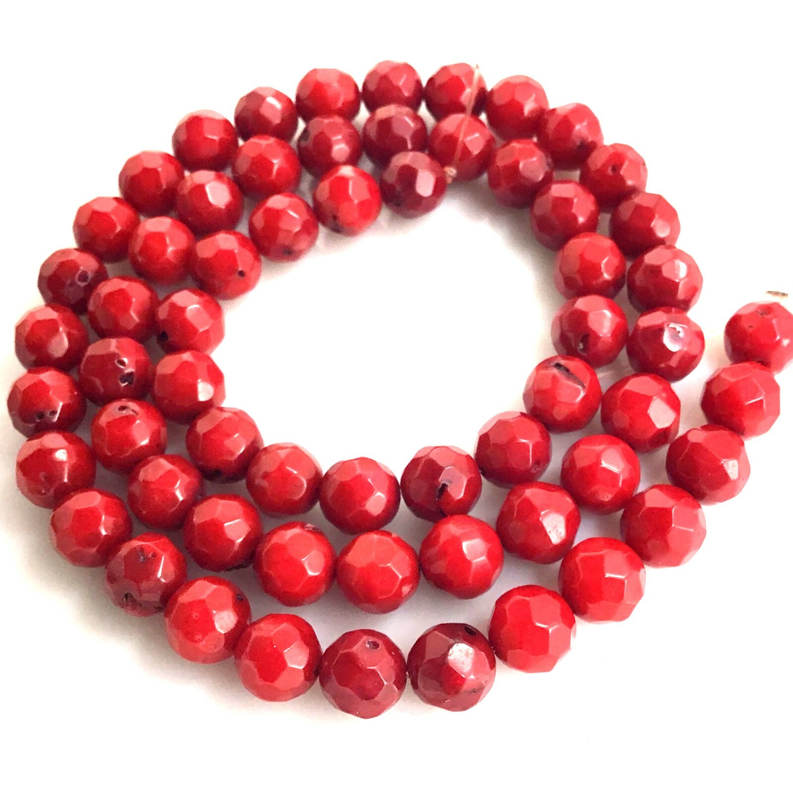 Natural Red Sea Coral Faceted Round Loose Beads 15 6mm 7mm Bead Jewelry Making