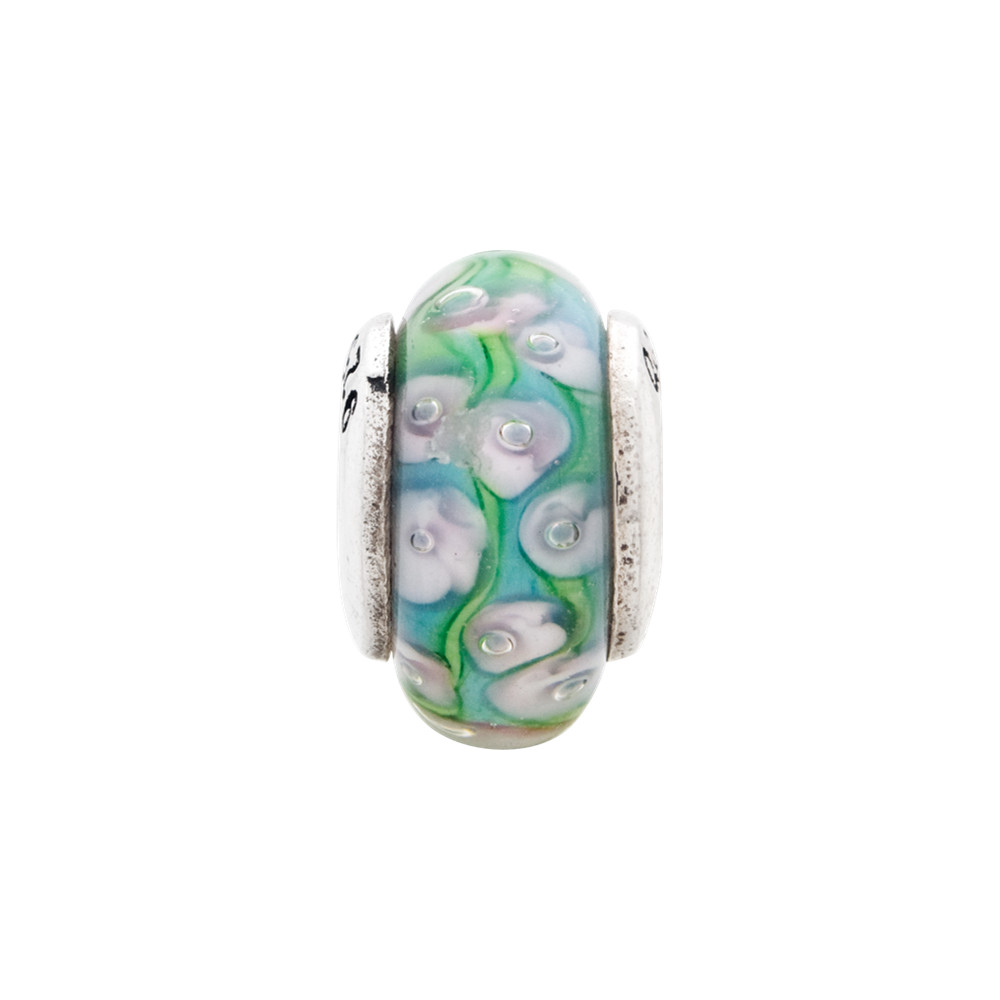 Green Blue w/ Swirl Glass Kids Bead .925 Sterling Silver Reflection Beads