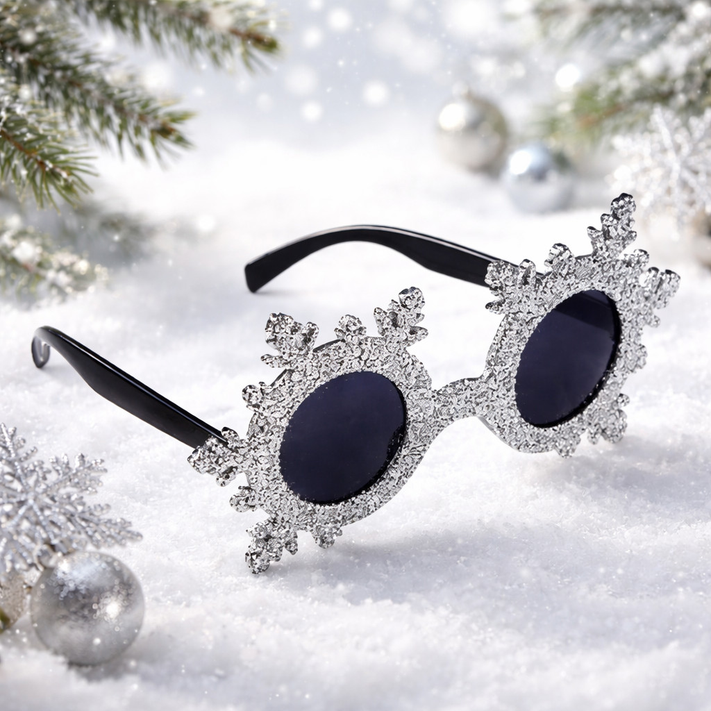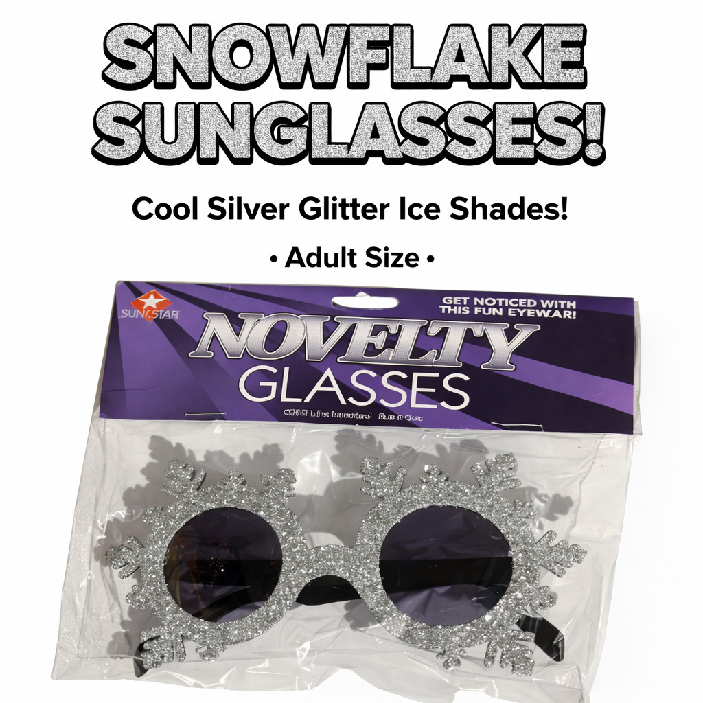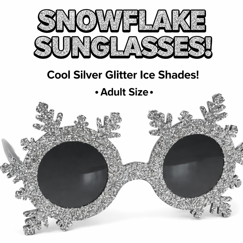 SNOWFLAKE SILVER GLITTER SUNGLASSES Eye Glasses Funny Joke Ski Gag Gift Adult