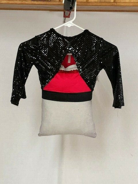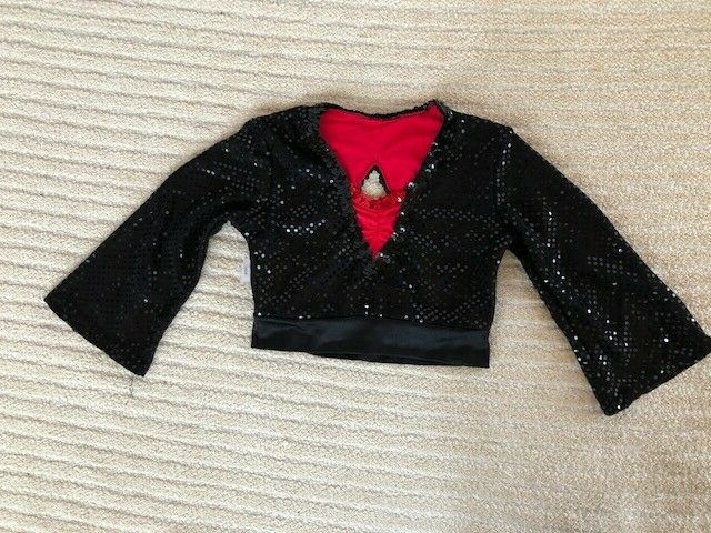 как выглядит Red Black Sequin Youth Crop Top Pants Jazz/Hip Hop Dance Costume фото
