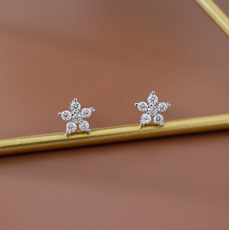 925 Sterling Silver Cubic Zirconia Plum Flower Stud Earrings 7mm Gift Box PE41