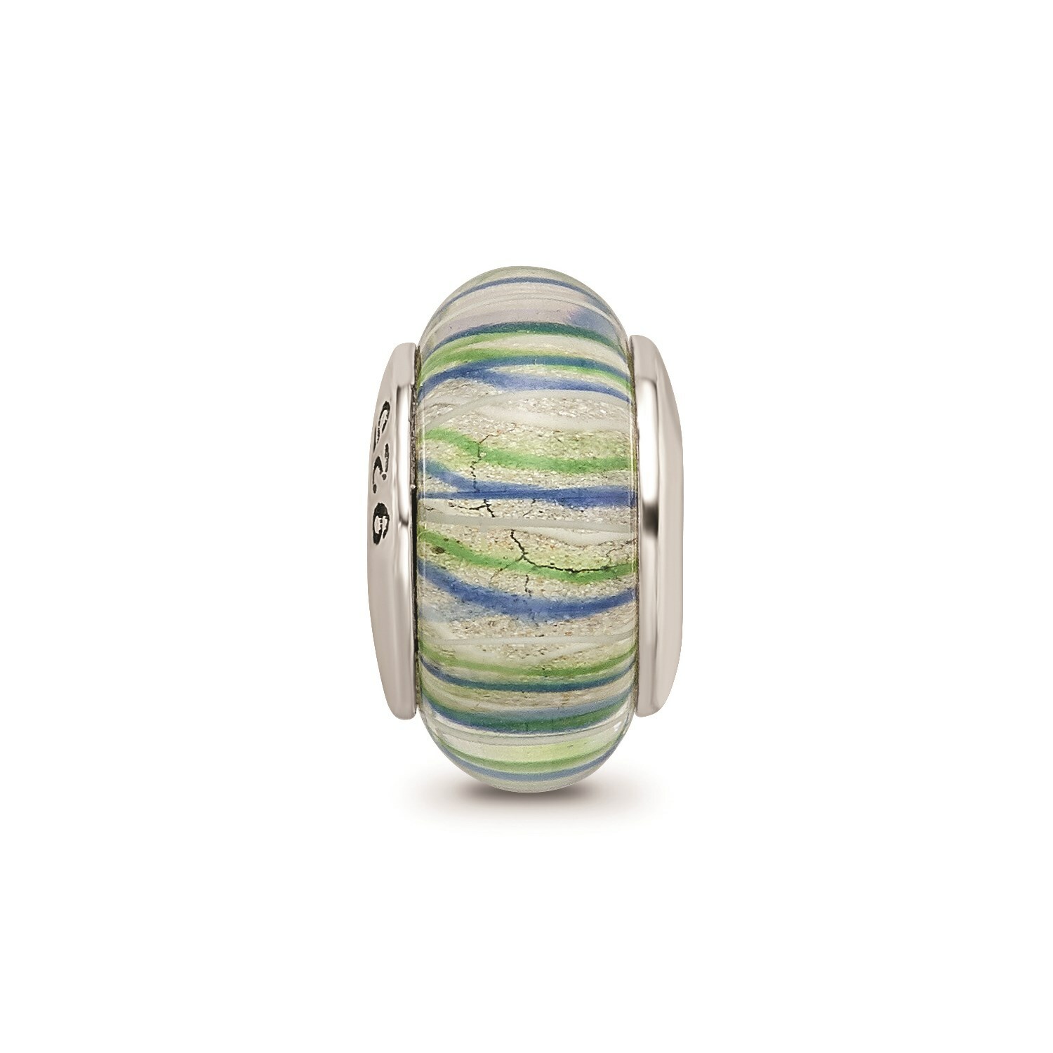 Reflection Beads Sterling Silver Blue Green Stripes Hand Blown Glass Bead