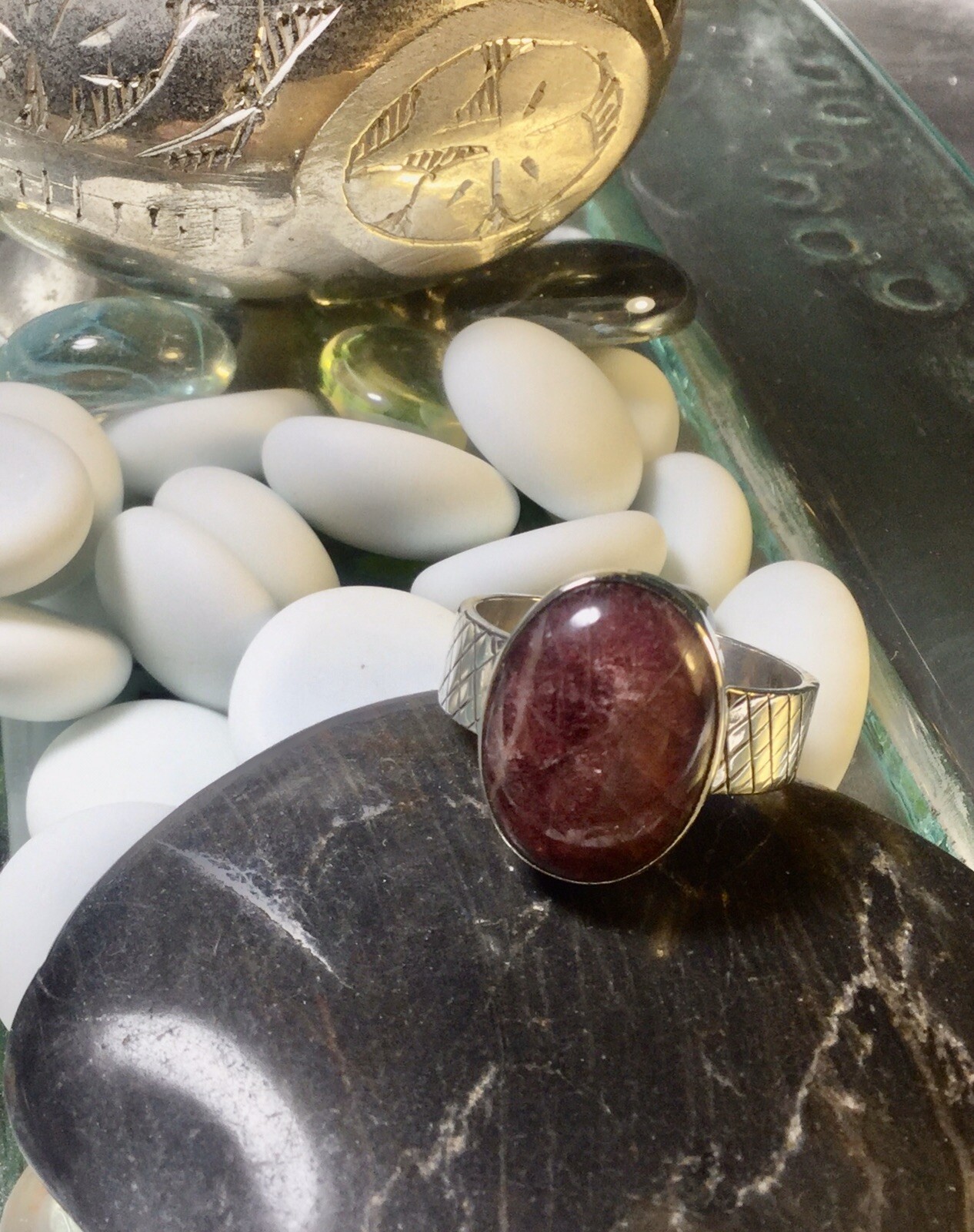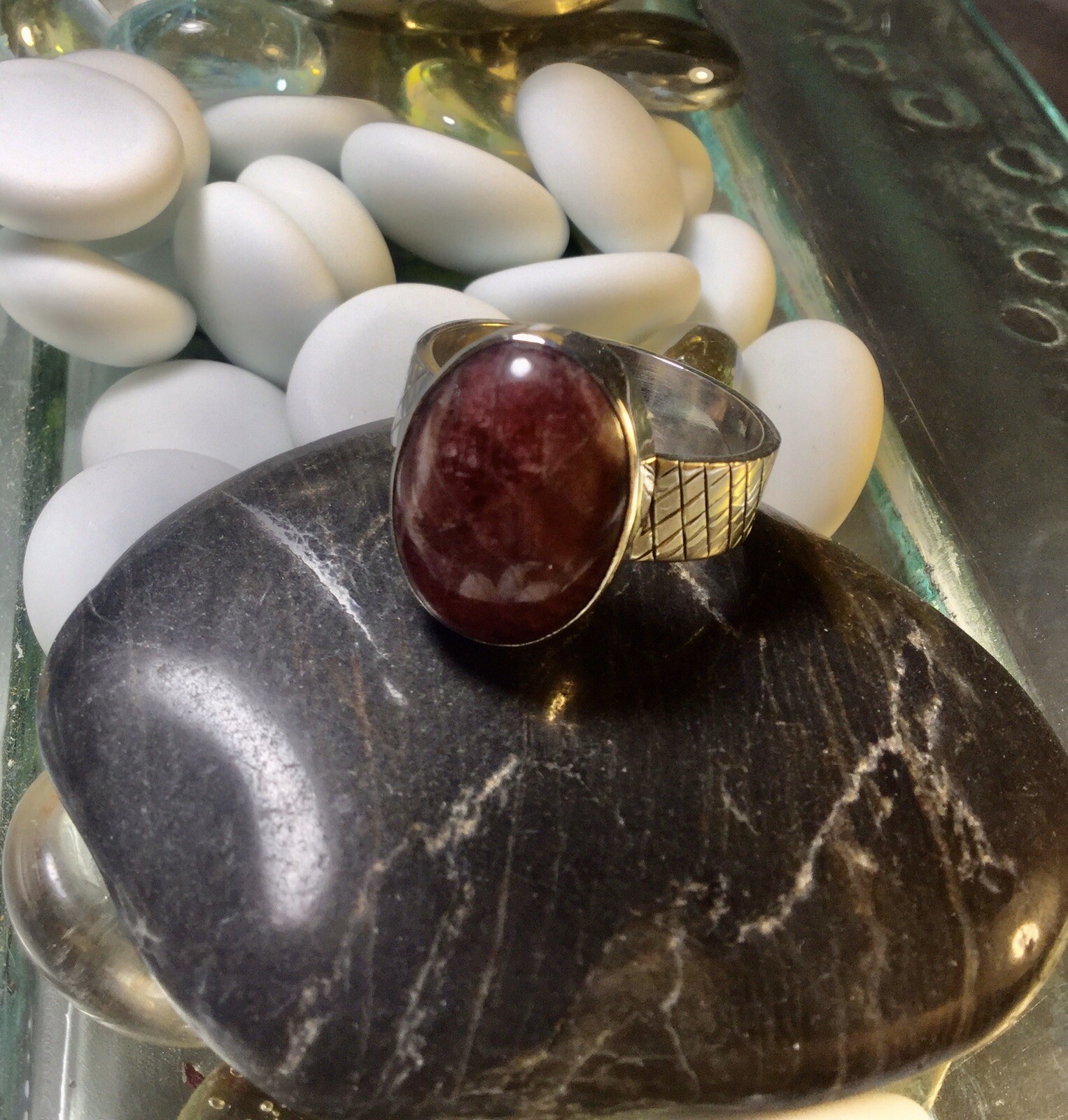 Genuine 925 Sterling Silver Large Natural Thulite Gemstone Ring Size 9