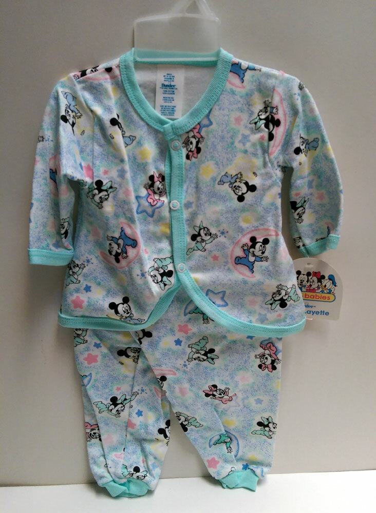 Dundee Disney Baby Mickey Minnie Mouse 2PC Layette Pajama Set Cotton Sleepwear