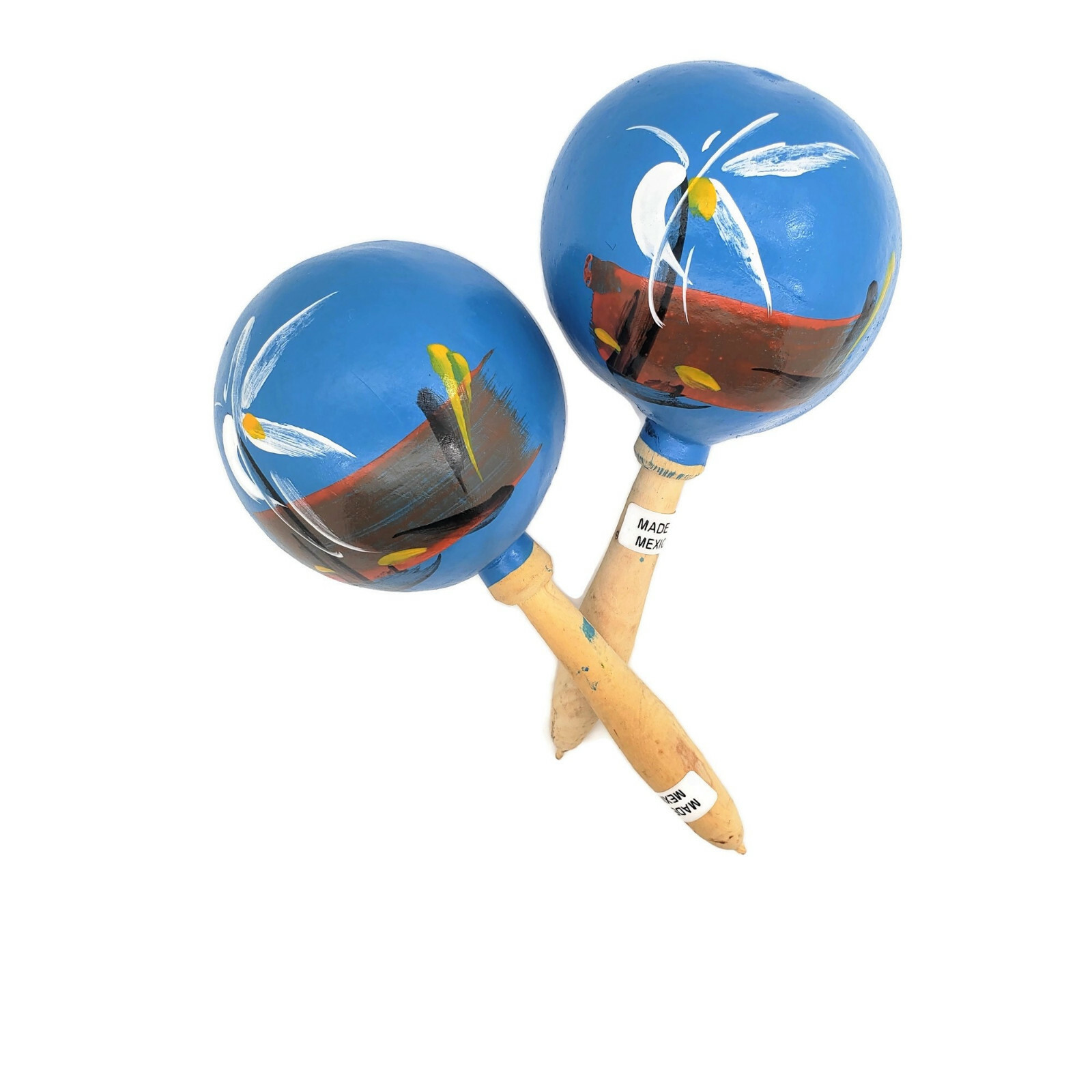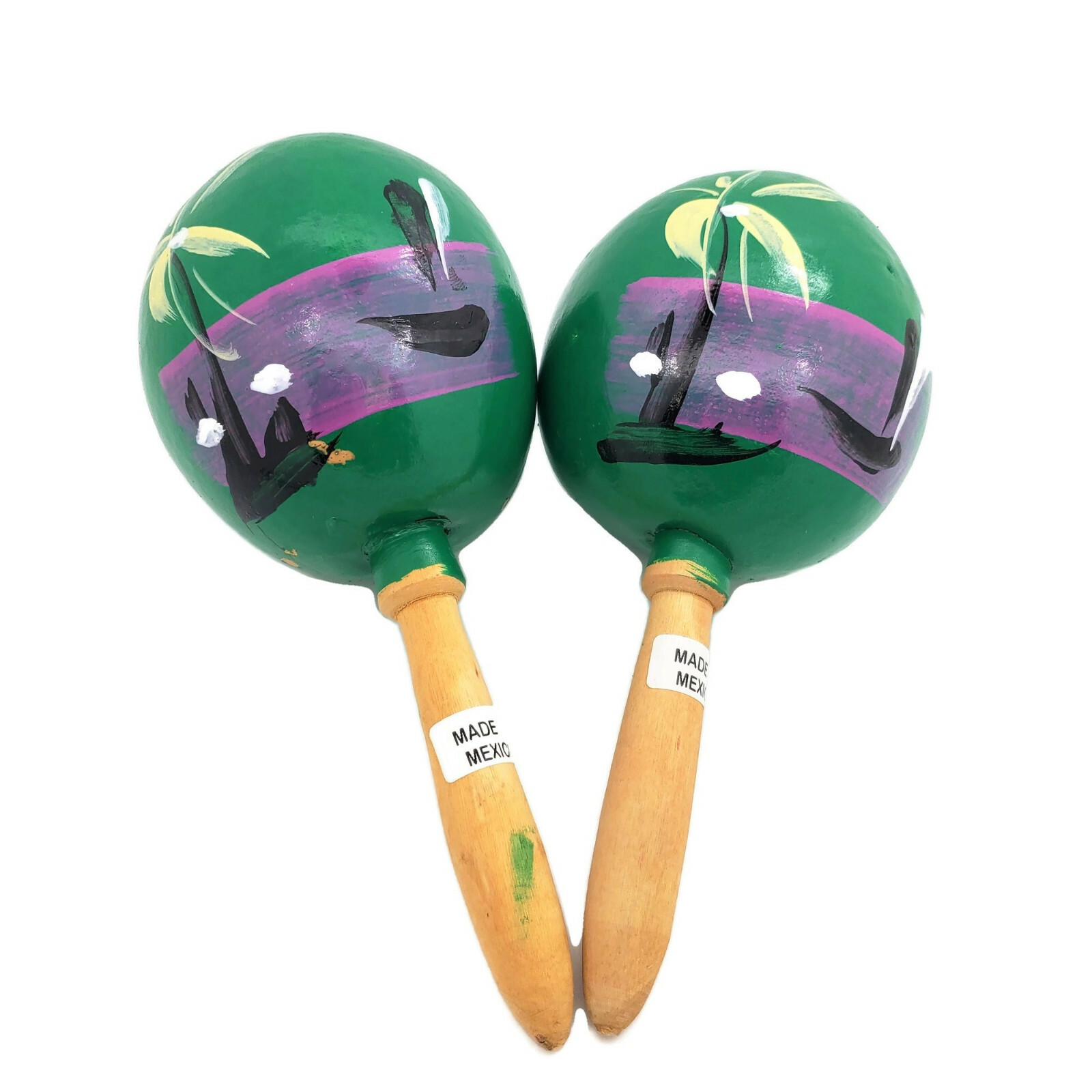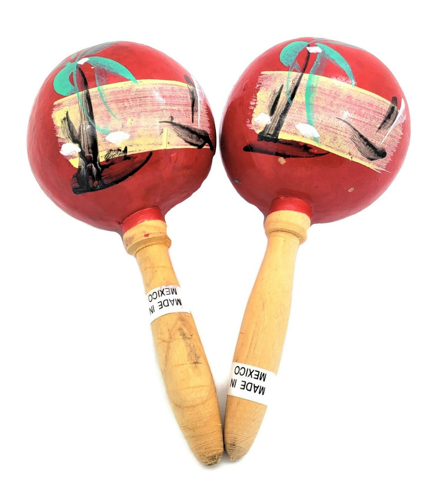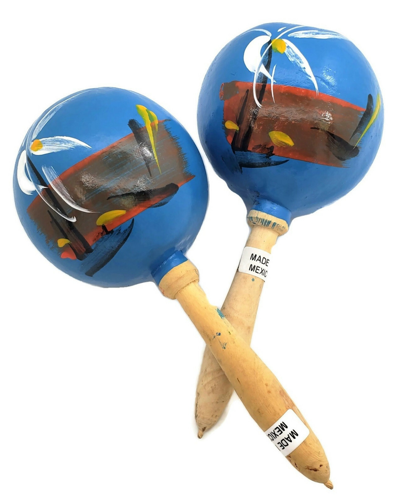 • 8" Hand Made Genuine Mexican Real Wooden Maracas Pack of 2 Random Color Pick