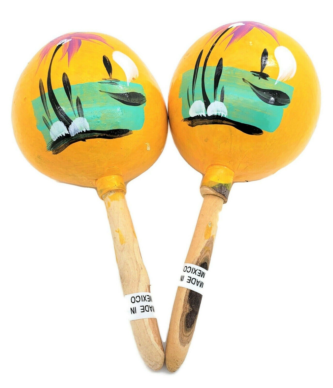 8 Hand Made Genuine Mexican Real Wooden Maracas Pack of 2 Random Color Pick