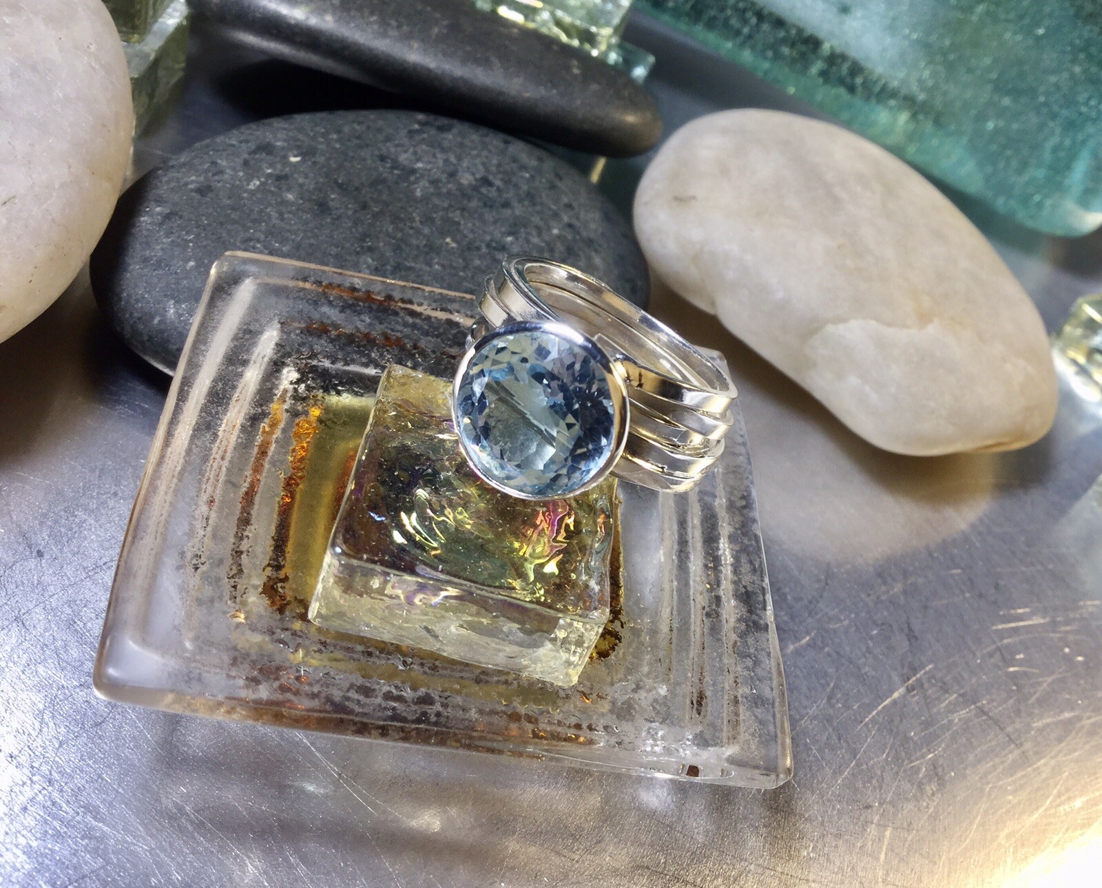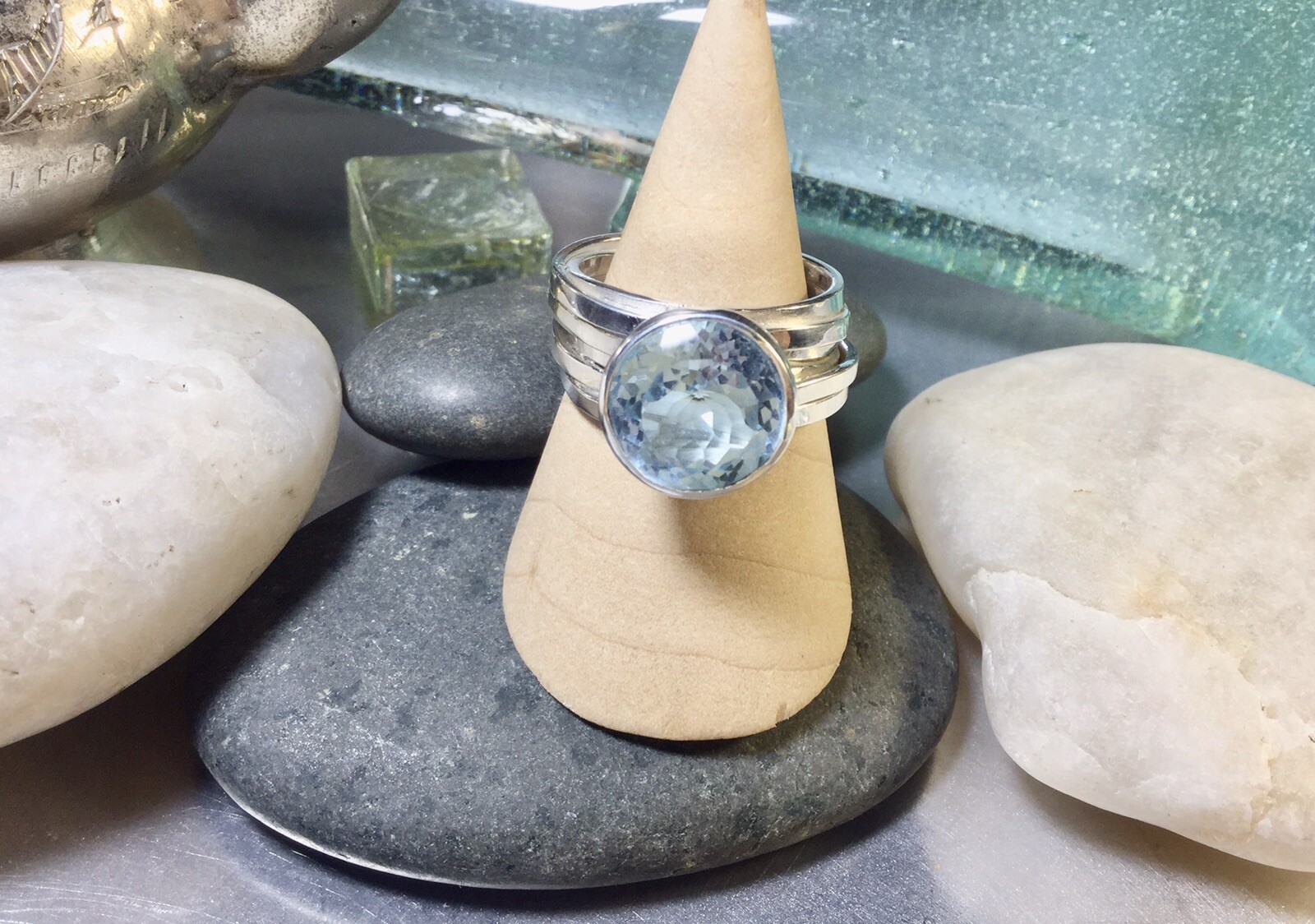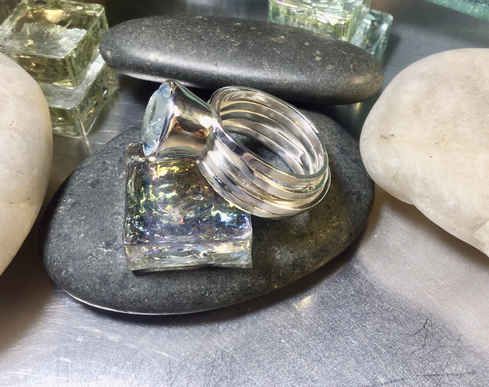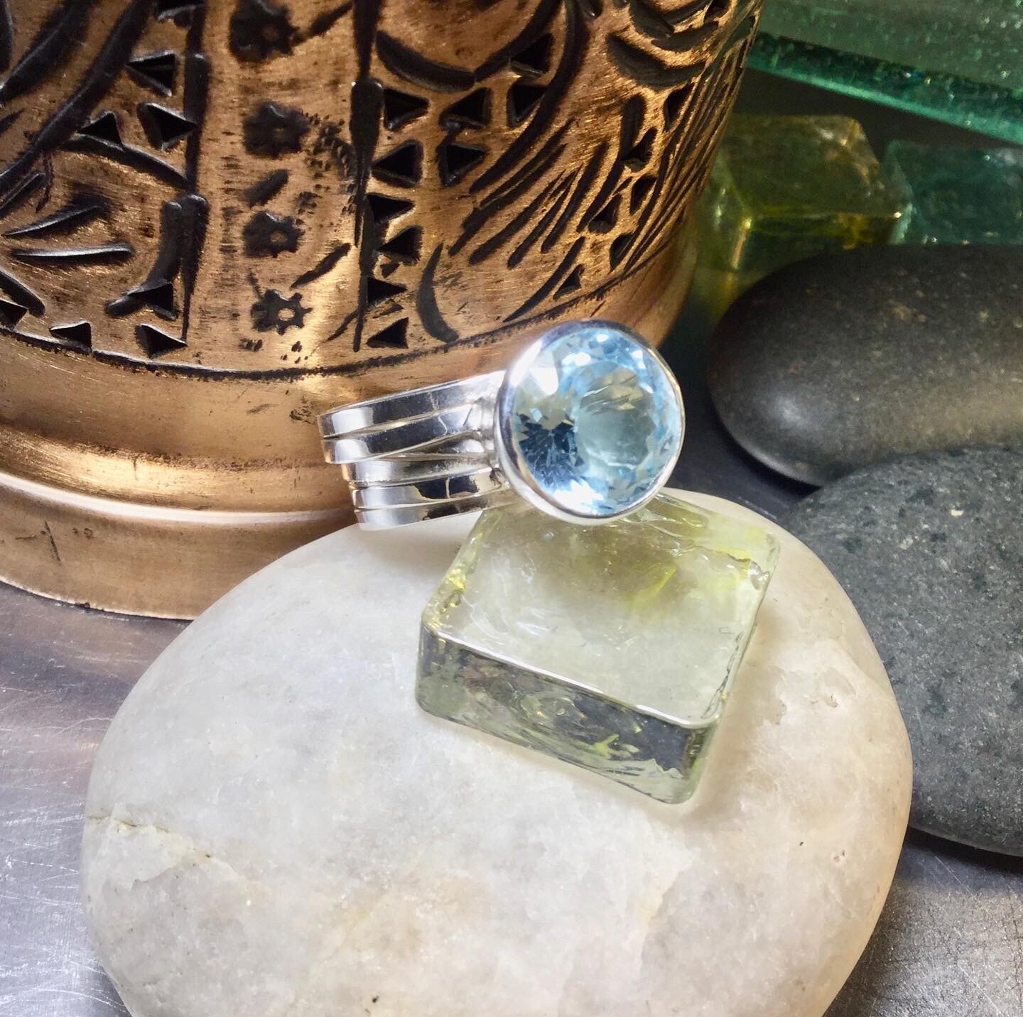 как выглядит Genuine 925 Sterling Silver Large Chunky Blue Topaz Gemstone Ring Size 2 sizes фото