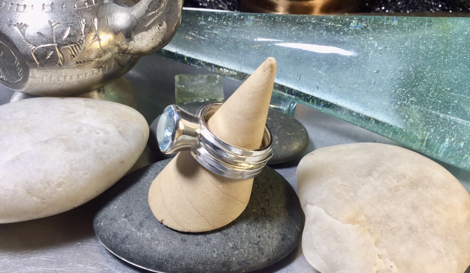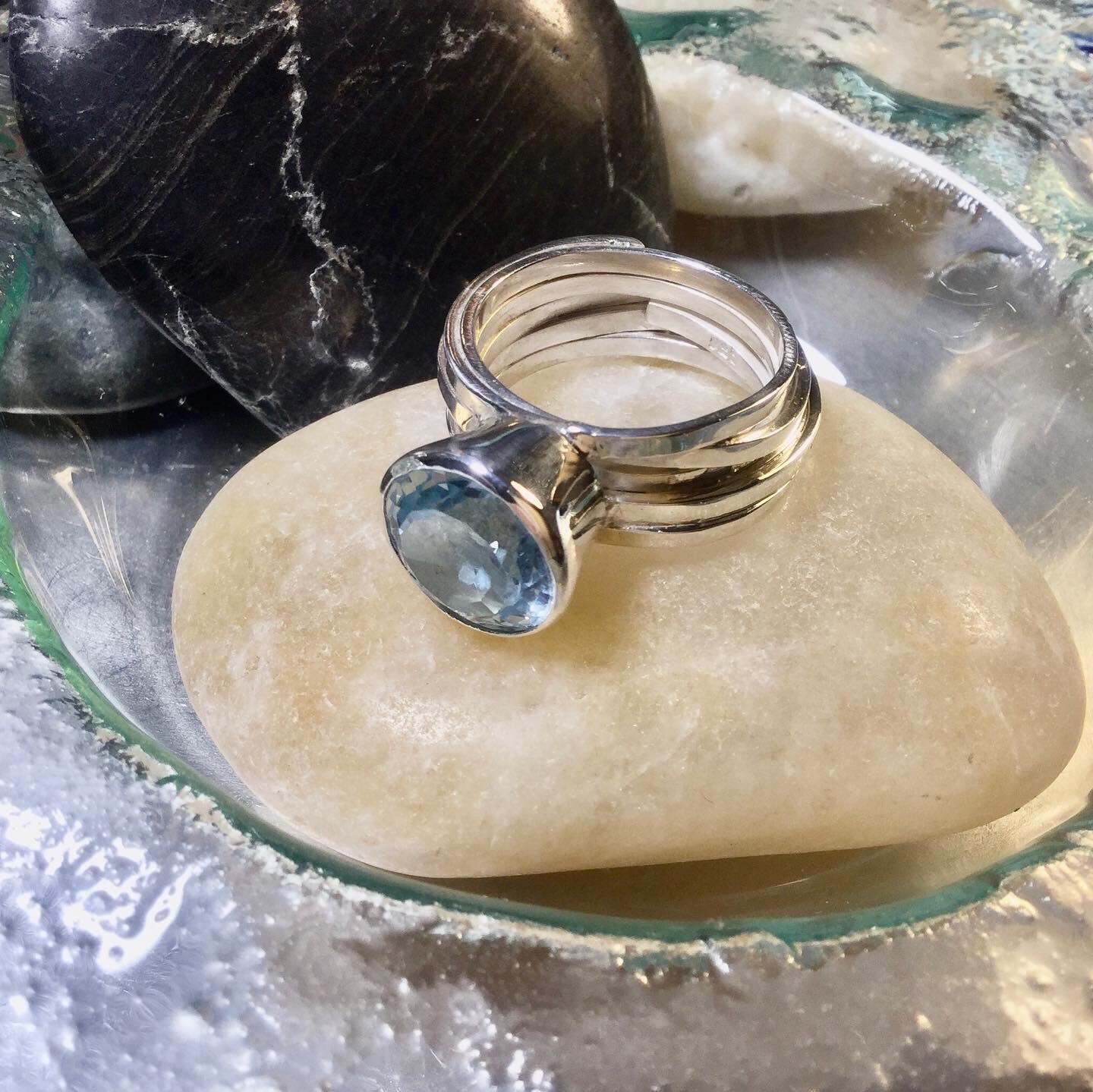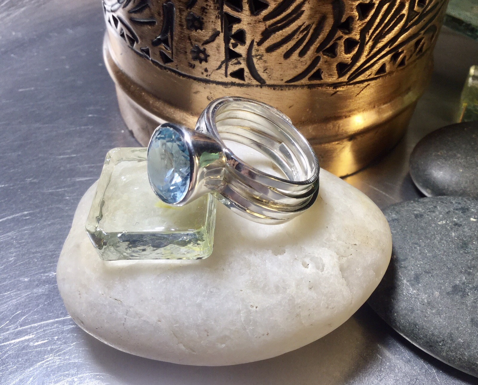 Genuine 925 Sterling Silver Large Chunky Blue Topaz Gemstone Ring Size 2 sizes