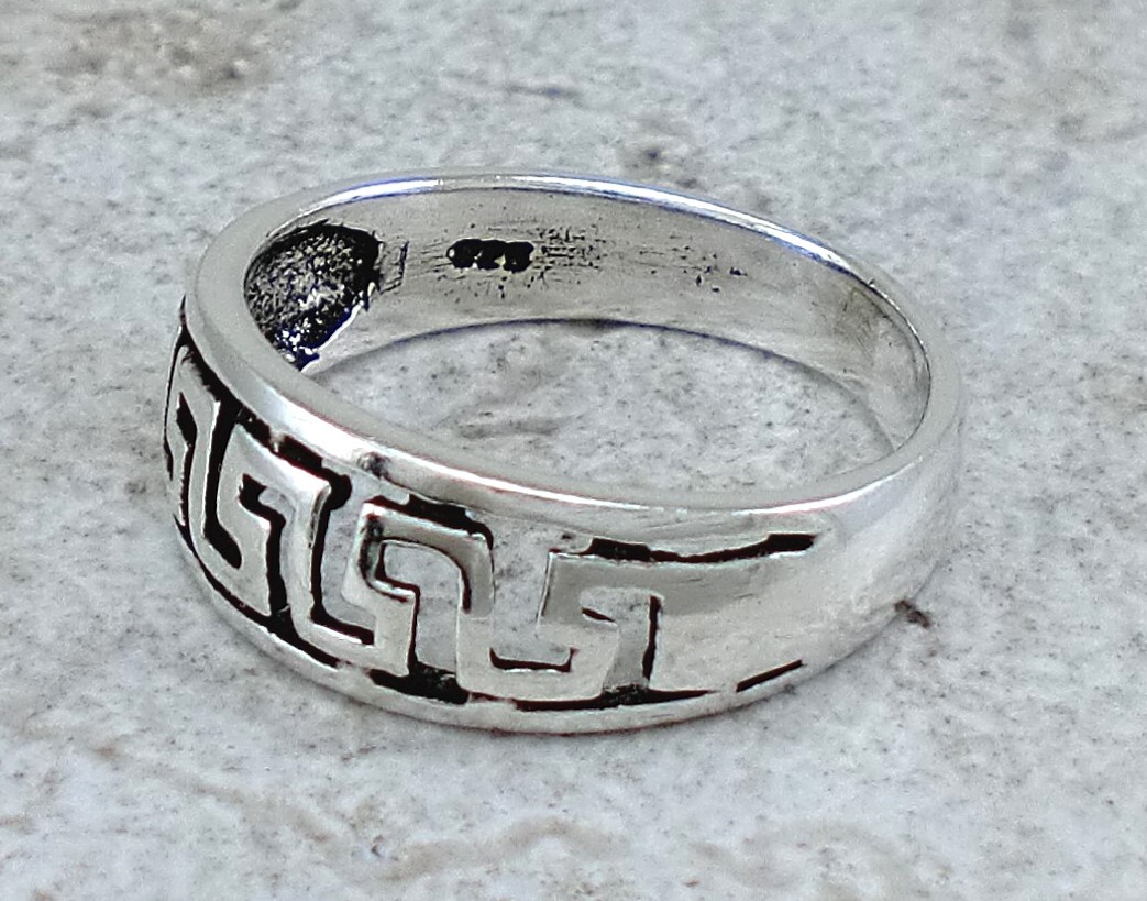 UNIQUE .925 STERLING SILVER GREEK KEY BAND RING size 7 style r3006