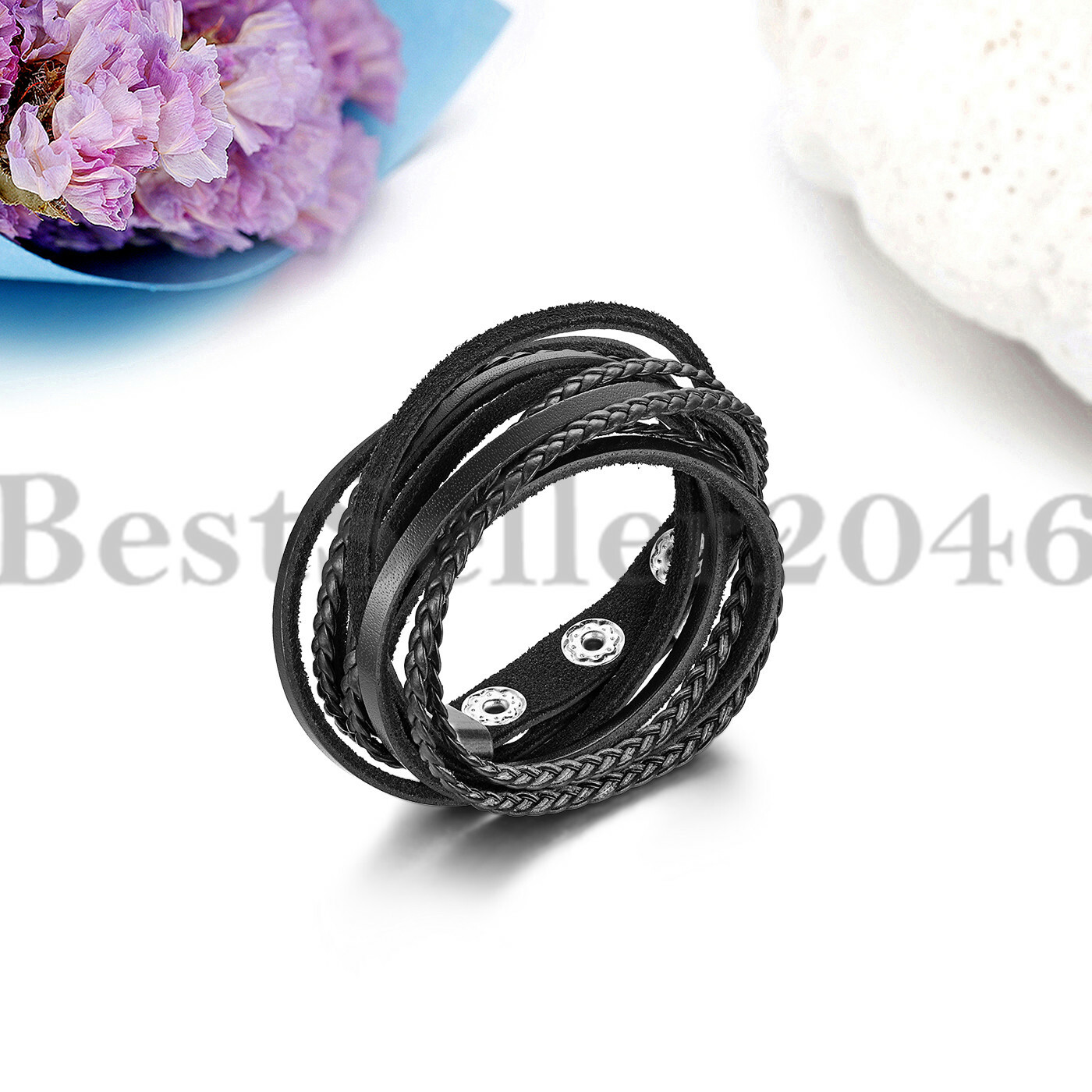 как выглядит Punk Men Women Multi-layer PU Leather Braided Wrap Wristband Bracelet Adjustable фото