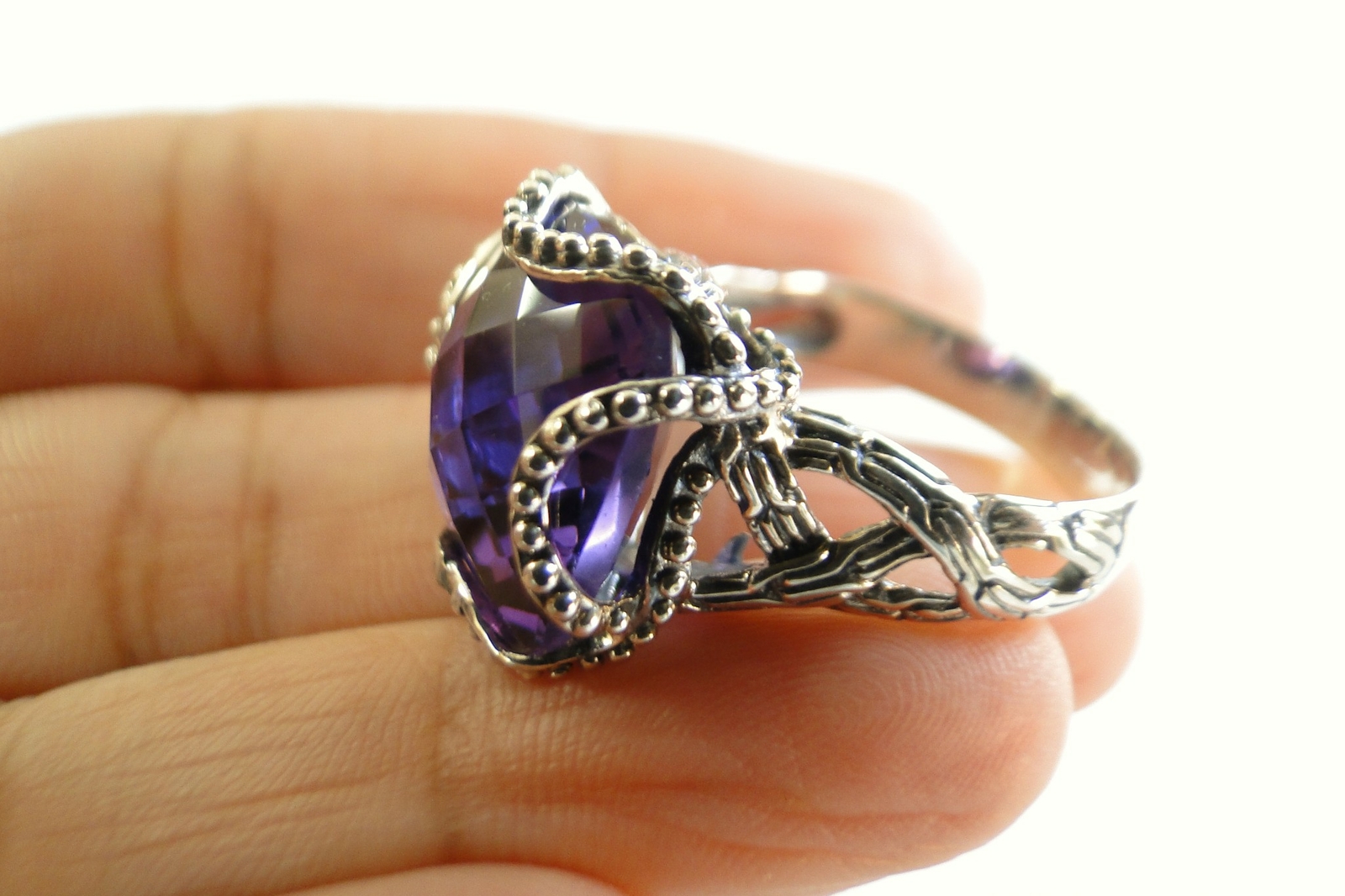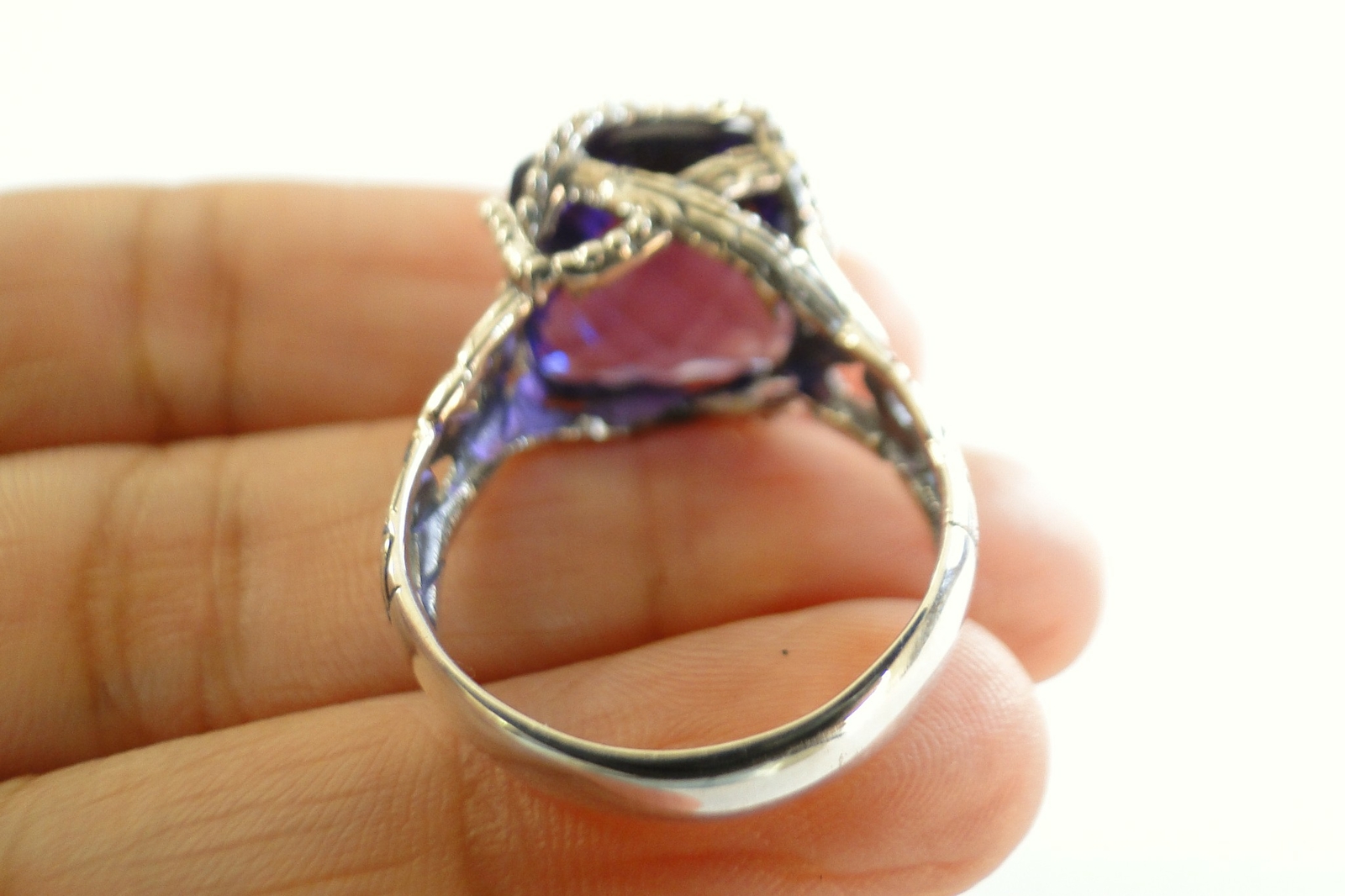 как выглядит Purple Amethyst Solitaire Wire Wrap Style 925 Sterling Silver Ring 6 7 8 9 фото