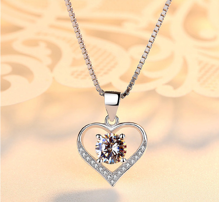 как выглядит 925 Sterling Silver Love Heart CZ Pendant Necklace 18" Birthday Women Girl Gift фото