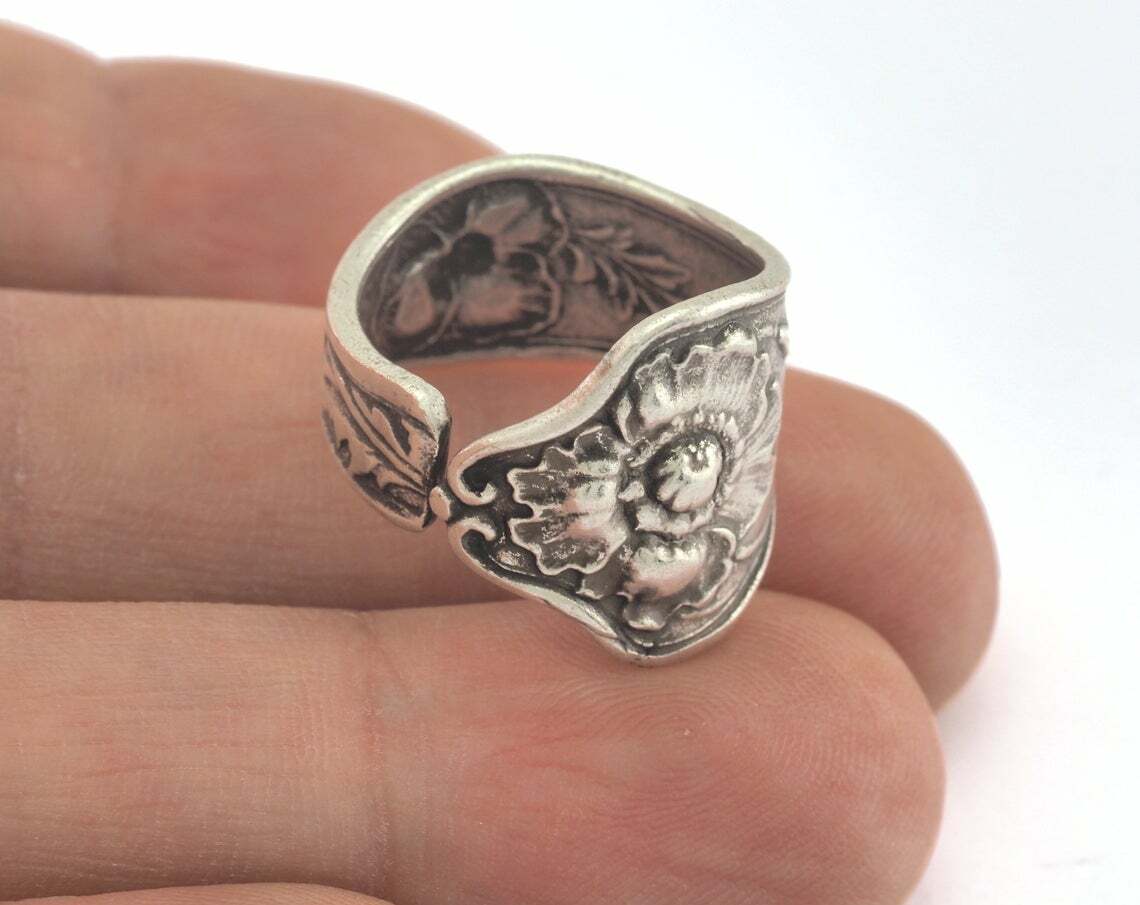 Flower Spoon Ring Adjustable Antique Silver Plated brass 18.5mm 8.5US inner 2754