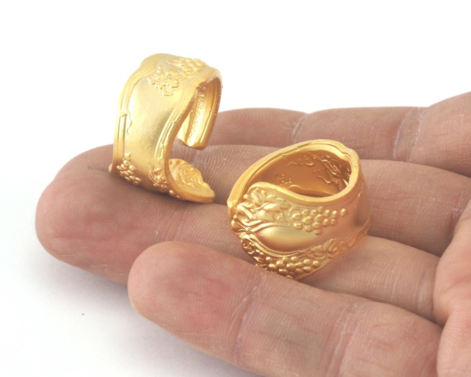 Spoon Ring Flower Patterned Adjustable Matte Gold Plated Brass 7US
