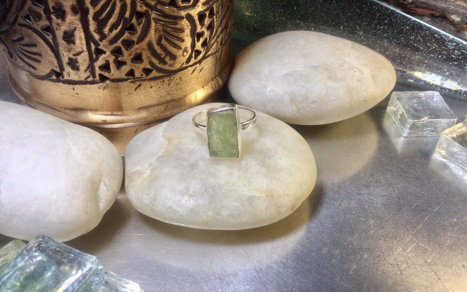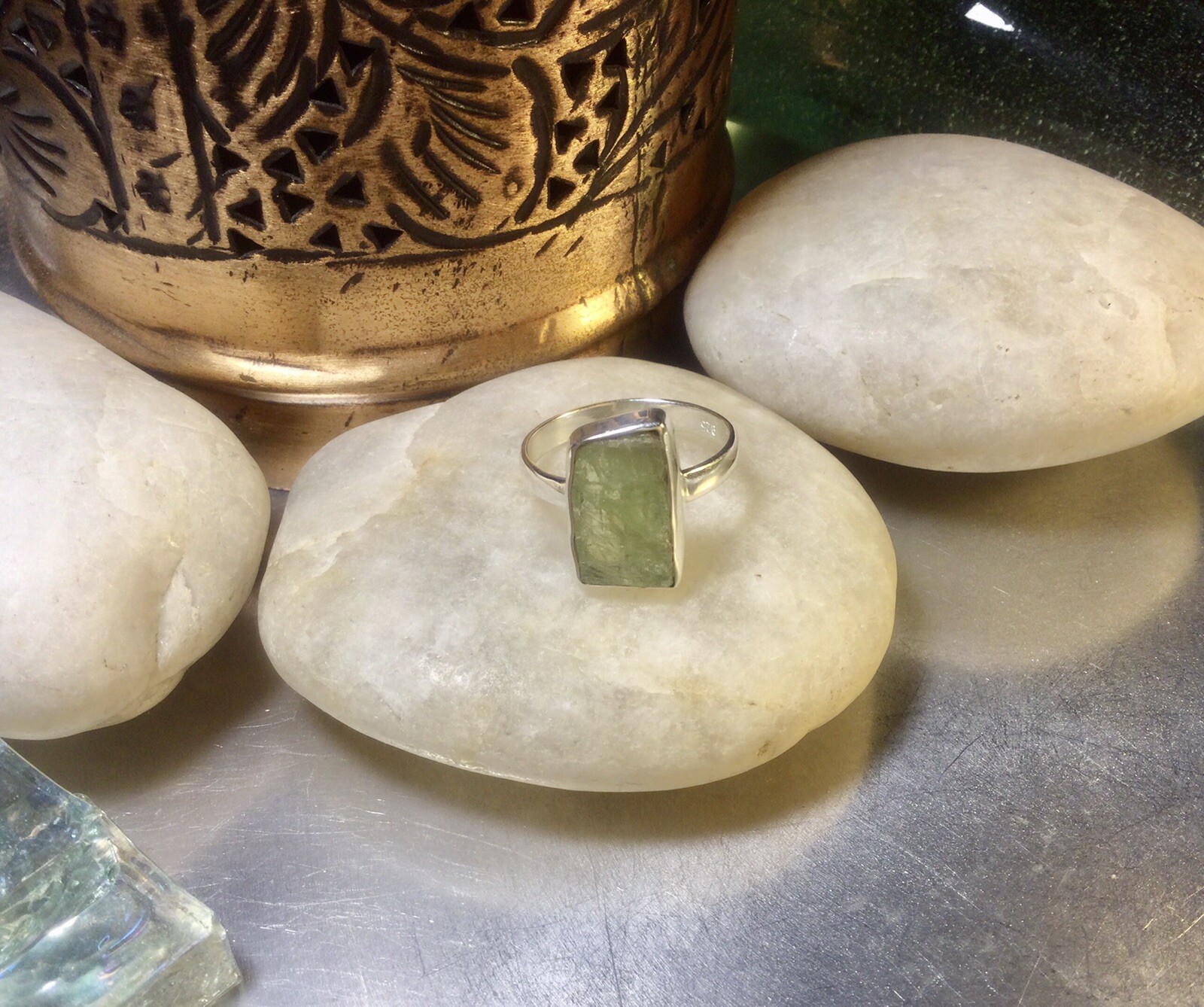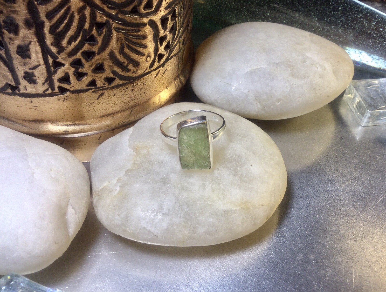 Genuine 925 Sterling Silver Green Kyanite Gemstone Ring Size 8