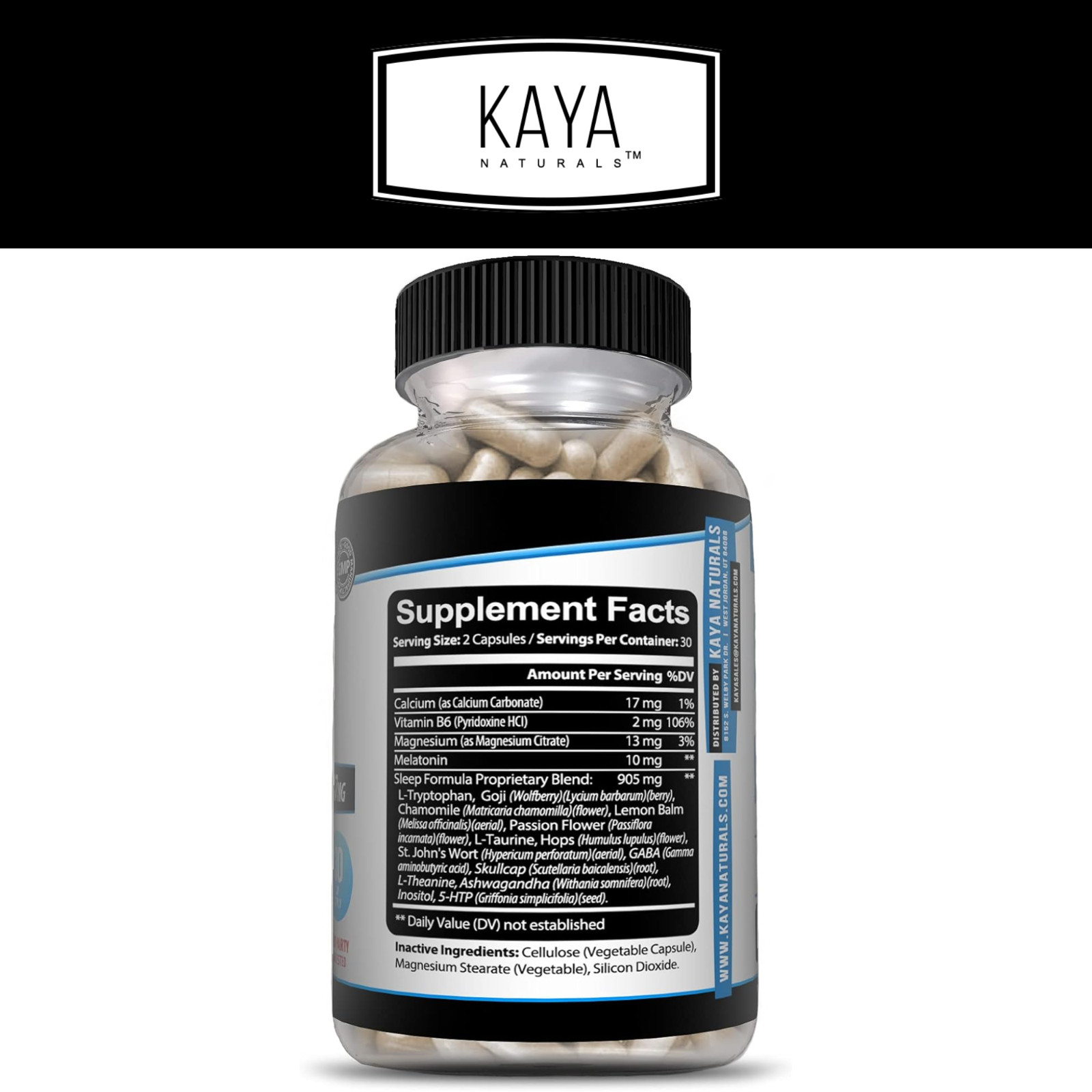 Ingredients: Melatonin, L-Taurine, 5-HTP, Calcium, Chamomile, L-Tryptophan, Lycium Barbarum (Goji), Magnesium, Passionflower (Passiflora), Vitamin B6