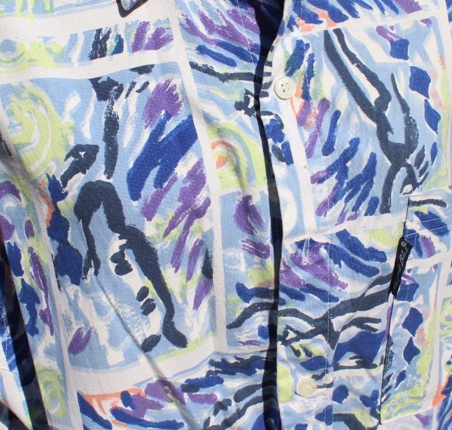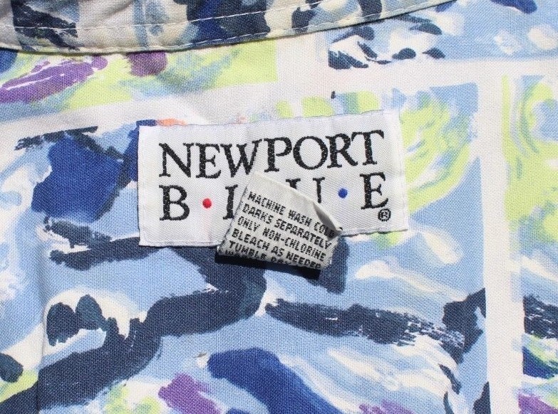 Vtg Mens Newport Blue Brand Retro Tribal Western Button Down Collar Shirt Medium