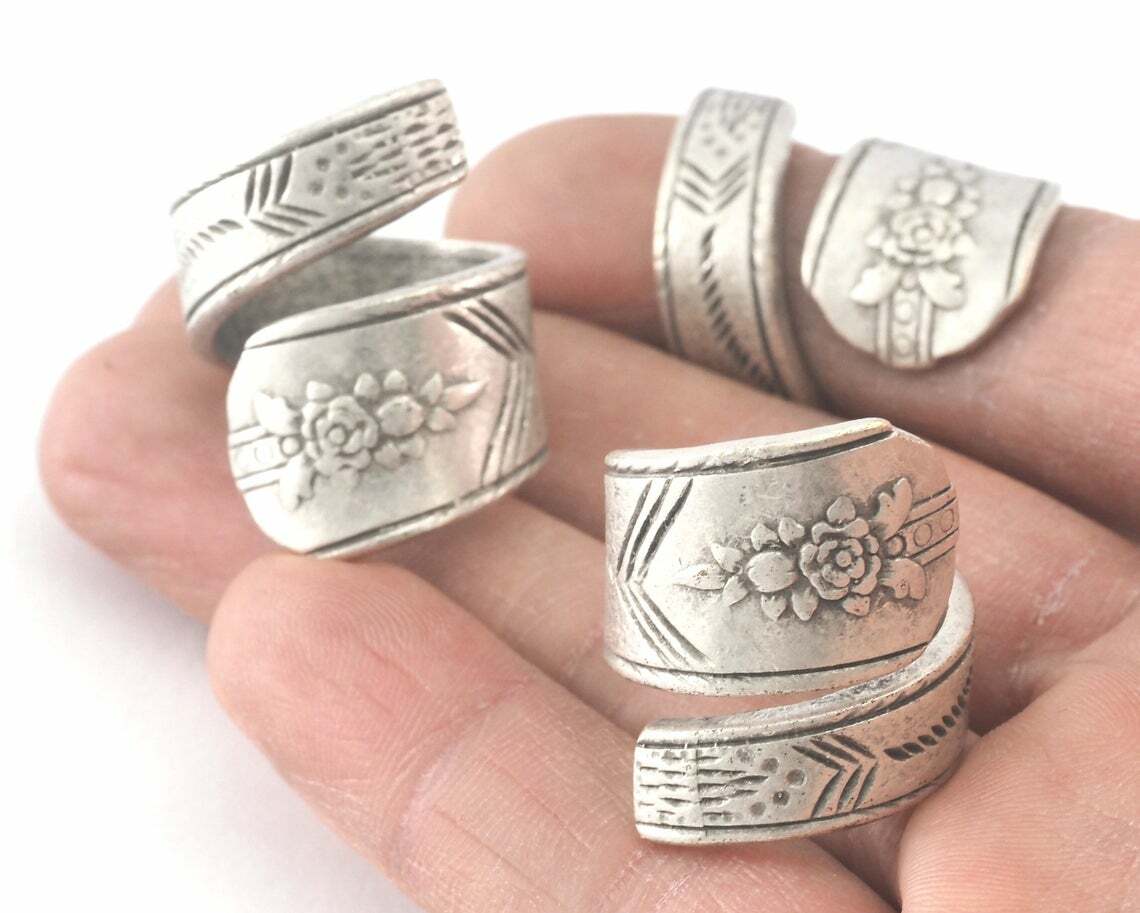 как выглядит Spoon Blossom Wrap Ring Flower Adjustable Antique silver plated brass 7us 4063 фото