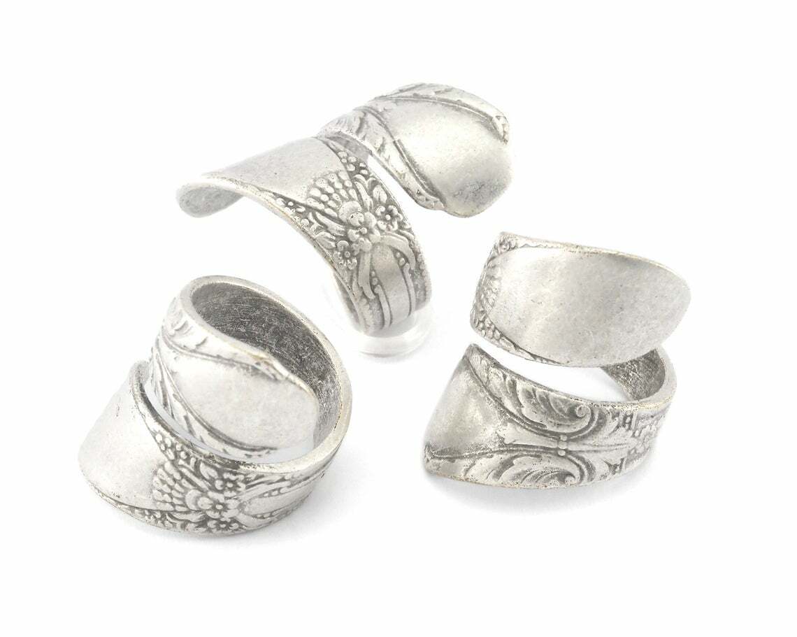 Spoon Wrap Ring Flower Adjustable Antique Silver Plated Brass 7us 4072
