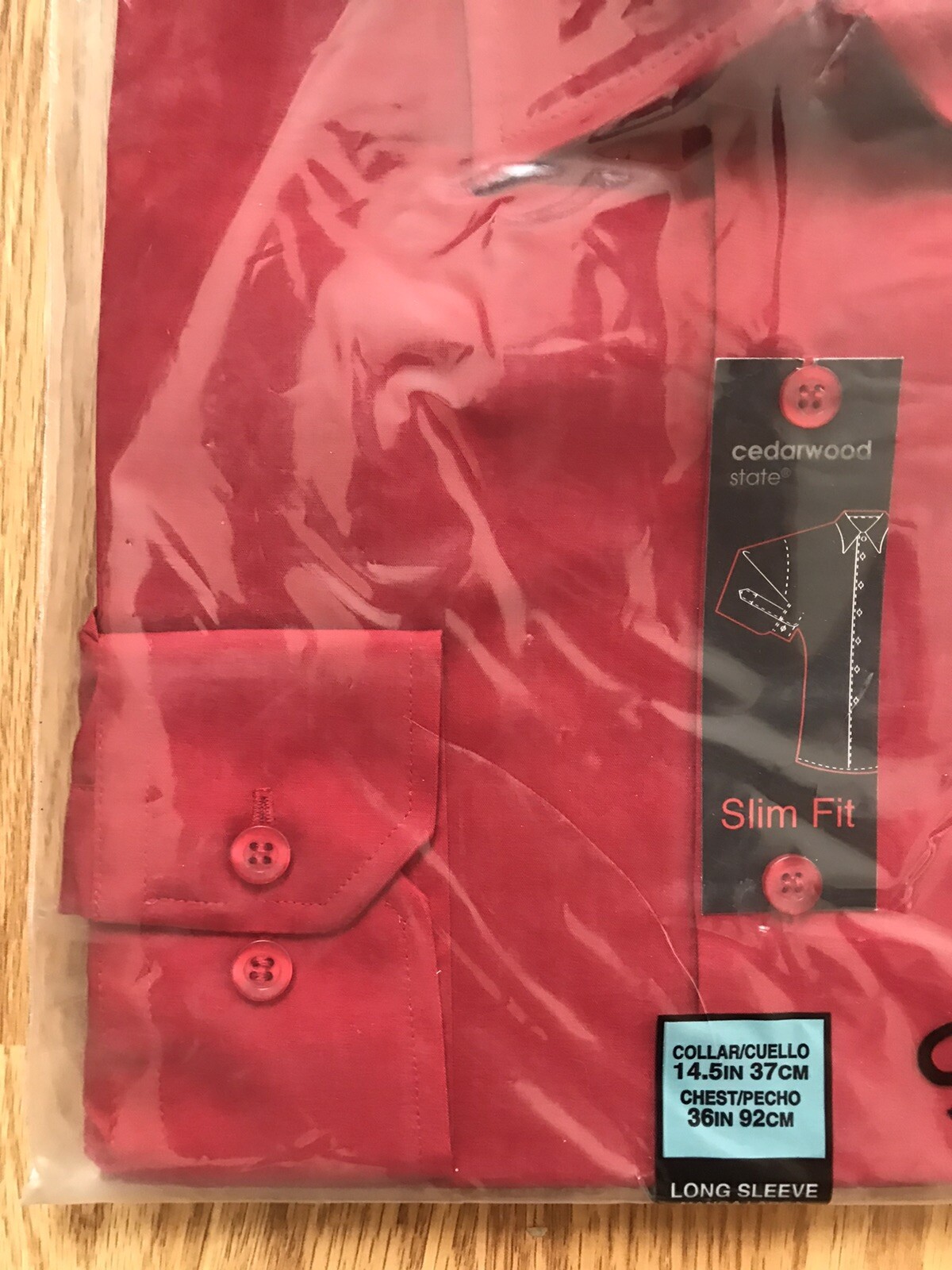 как выглядит RED LONG SLEEVED FORMAL BUSINESS SMART SLIM FIT SHIRT CHEST 36 INCH SMALL NEW фото