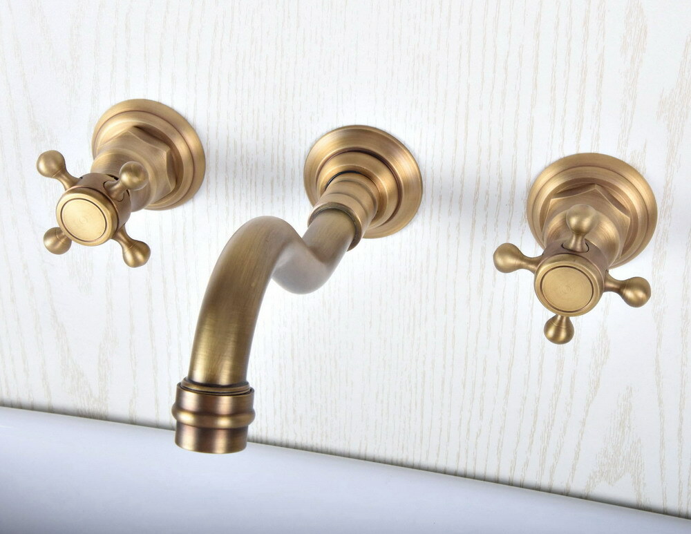 Antique Brass Double Handle Wall Bathroom Basin Faucet Sink Tub Mixer Tap 2sf512