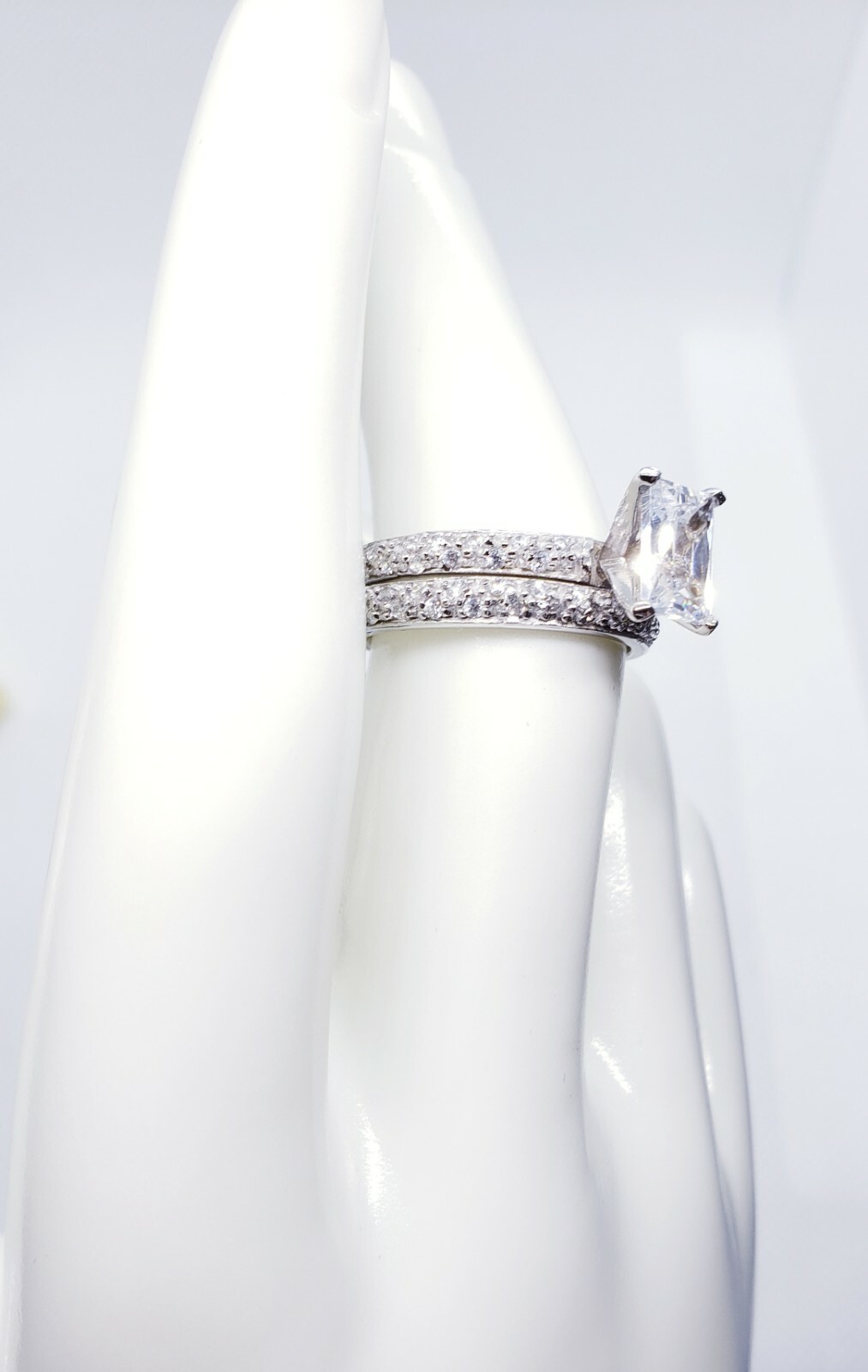 925 sterling silver white cubic zirconia solitaire and eternity wedding ring set