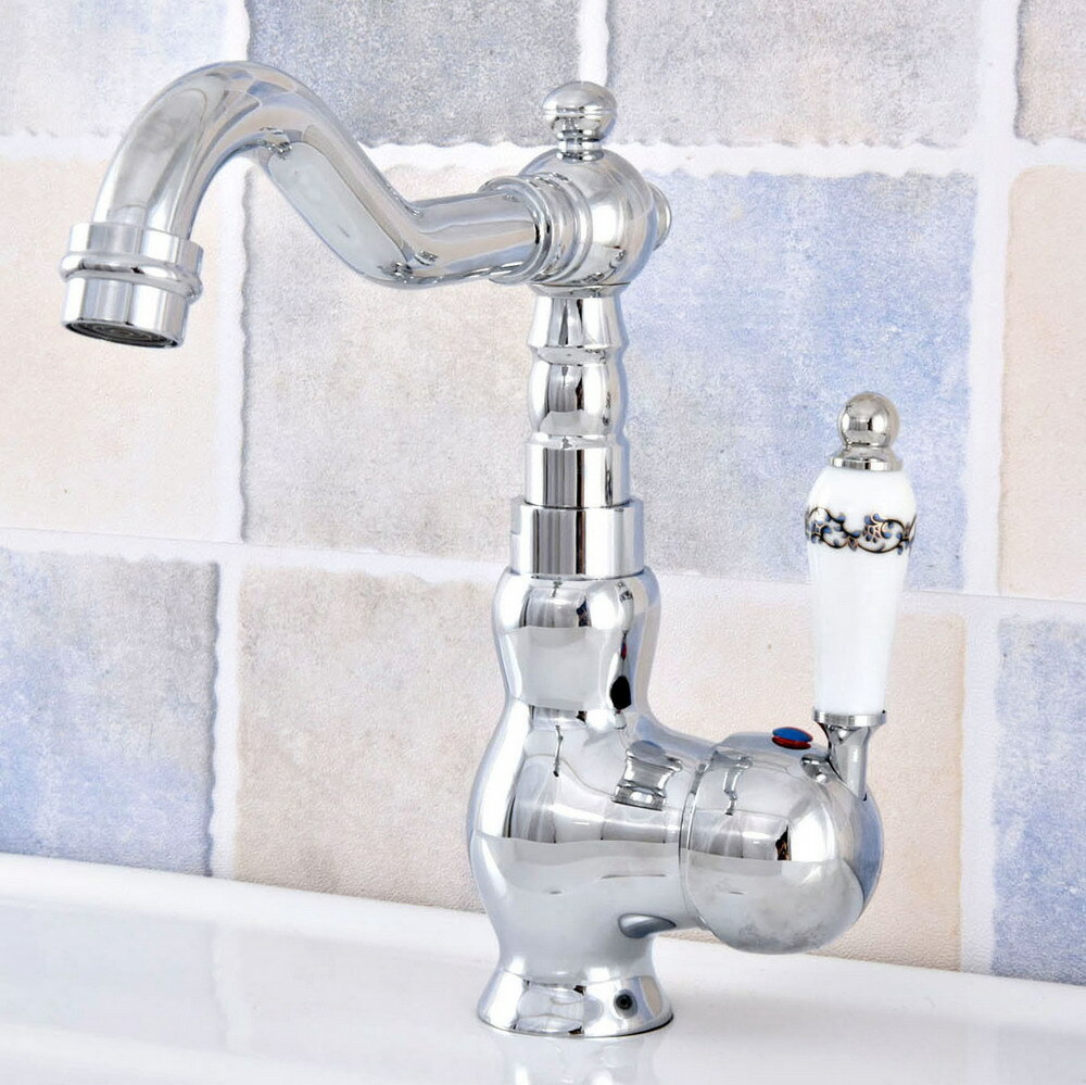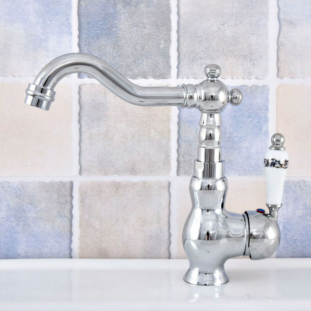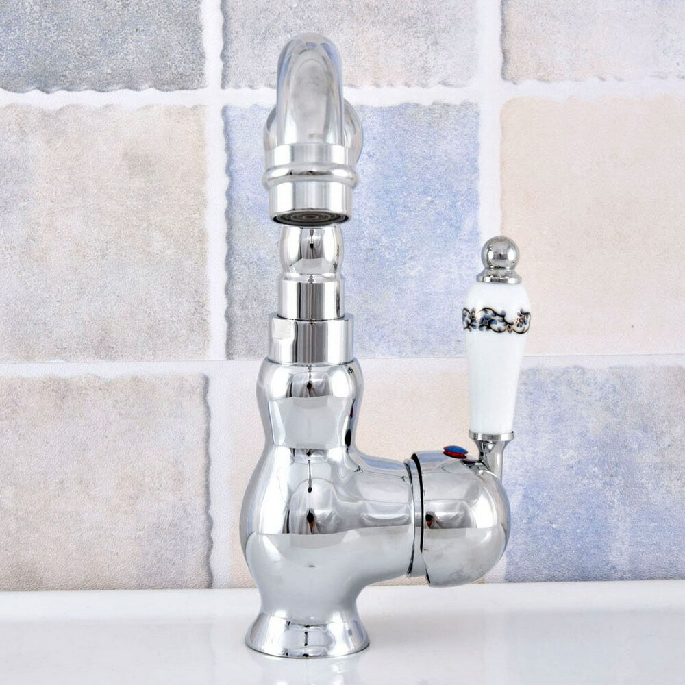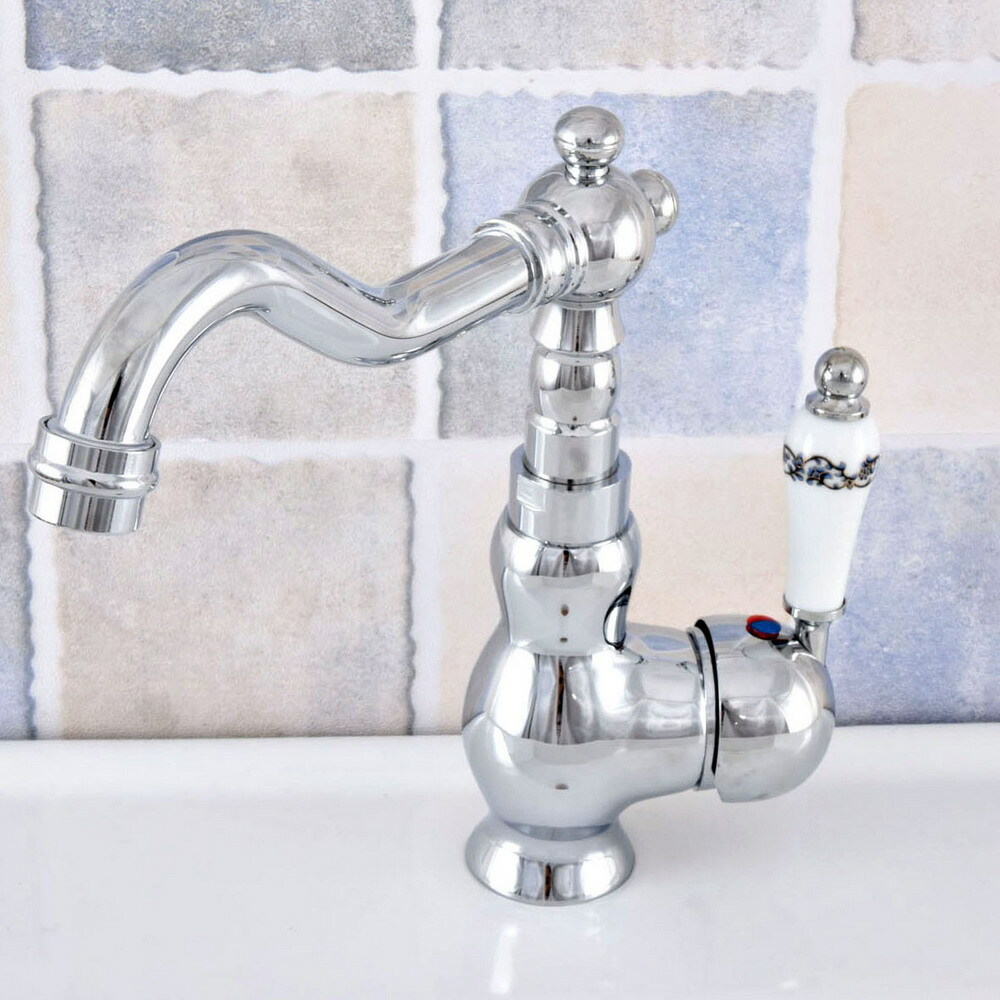 Silver Chrome Brass Ceramic Handle Swivel Kitchen Sink Faucet Mixer Tap 2sf653