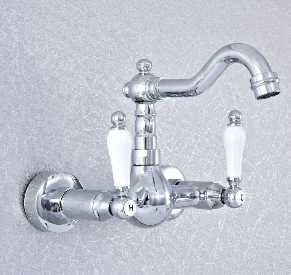 Silver Chrome Brass Swivel Kitchen Faucet Bathroom Vessel Sink Mixer Tap 2sf544