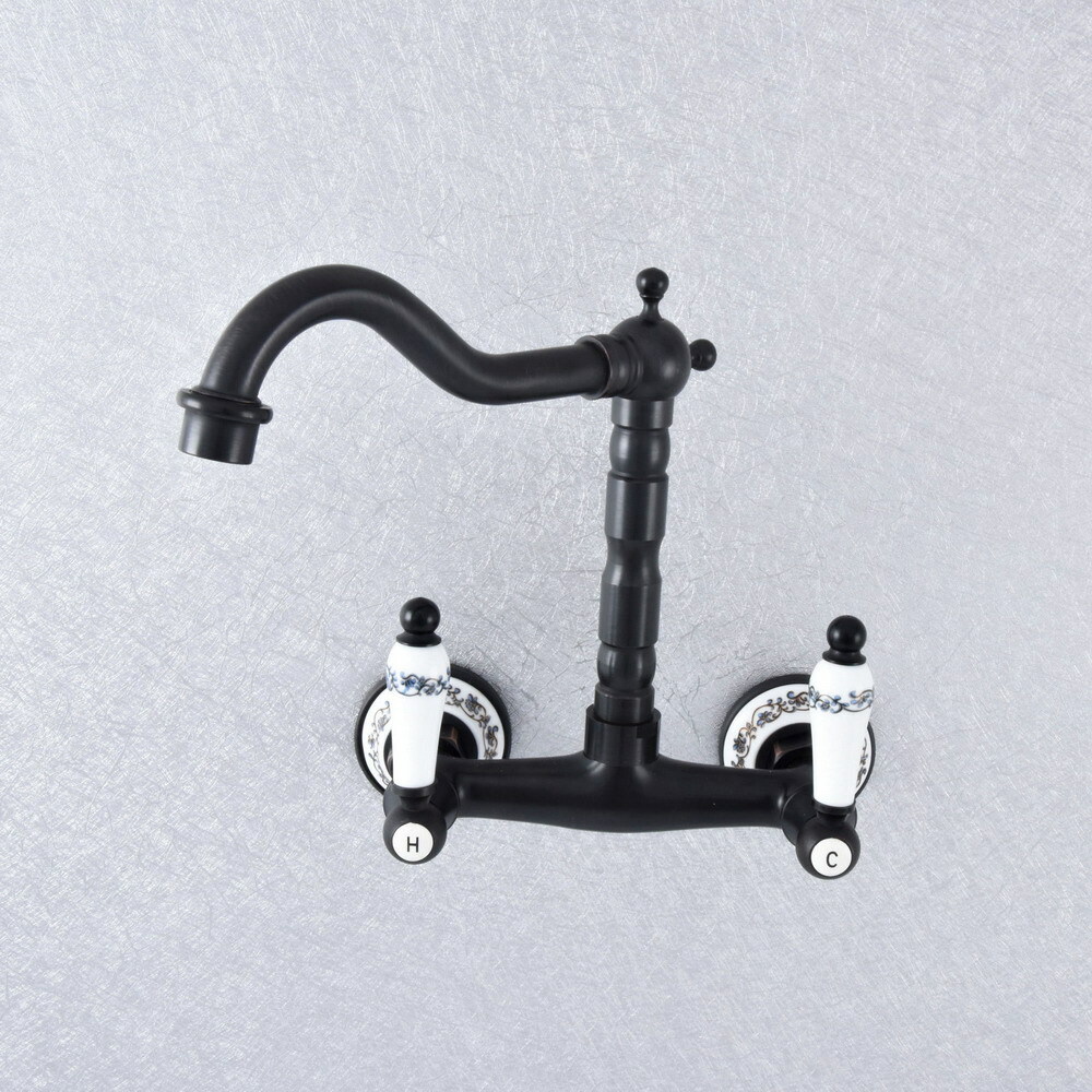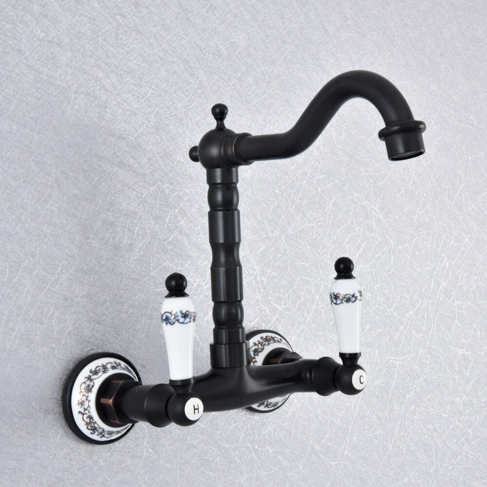 как выглядит Black oil Antique Brass Ceramic Handle/Base Kitchen Faucet Sink Mixer Tap 2sf762 фото