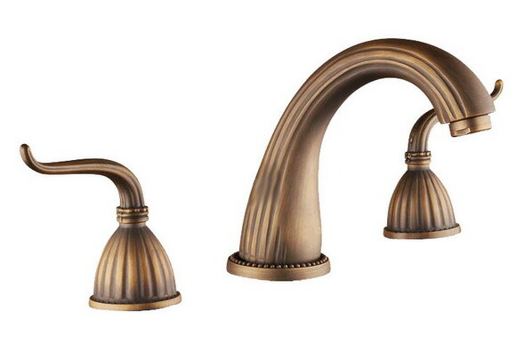 Antique Brass Widespread Bathroom Sink Faucet Three Hole Tub Mixer Tap 2nf038