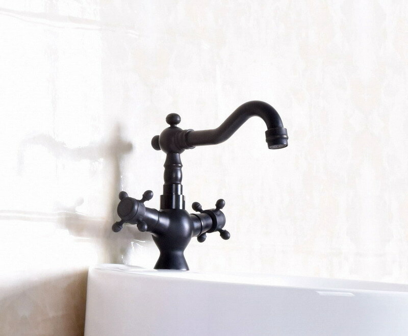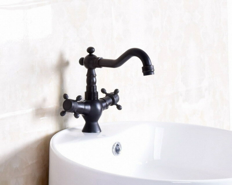 как выглядит Black oil Antique Brass Two Handle Kitchen Faucet Bathroom Sink Mixer Tap 2nf141 фото