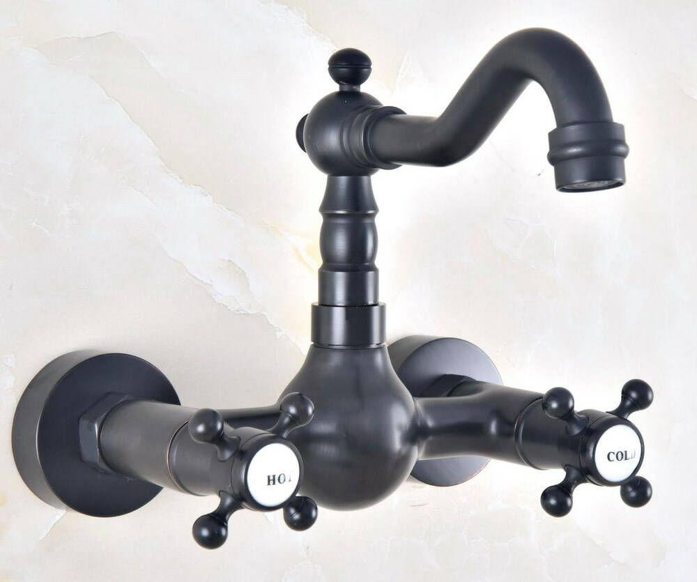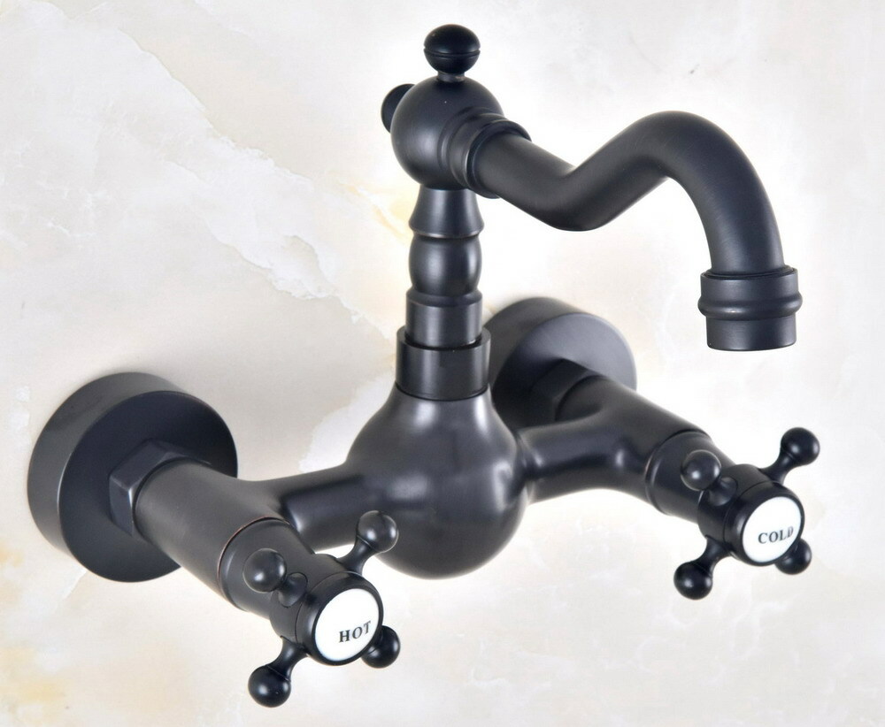 Wall Mount Black oil Antique Brass Kitchen Faucet Bathroom Sink Mixer Tap 2nf463