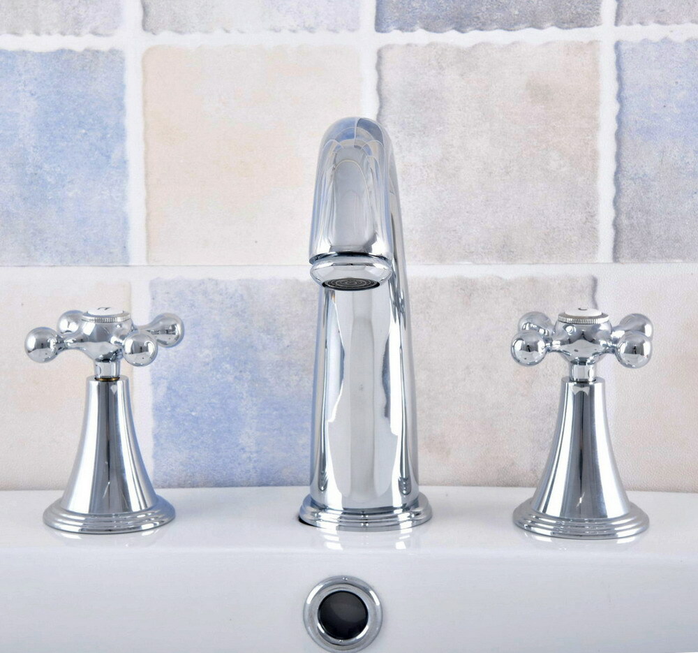 8 inch Three Hole Widespread Bathroom Sink Faucet Chrome Brass Mixer Tap 2nf545