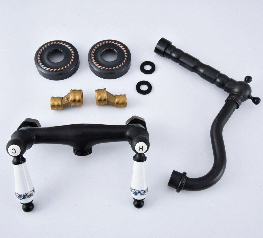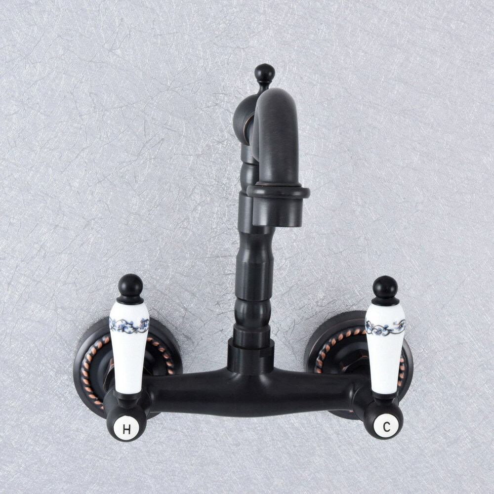 как выглядит Ceramic Handle Black oil Antique Brass Bathroom Sink Faucet Mixer Tap 2sf746 фото