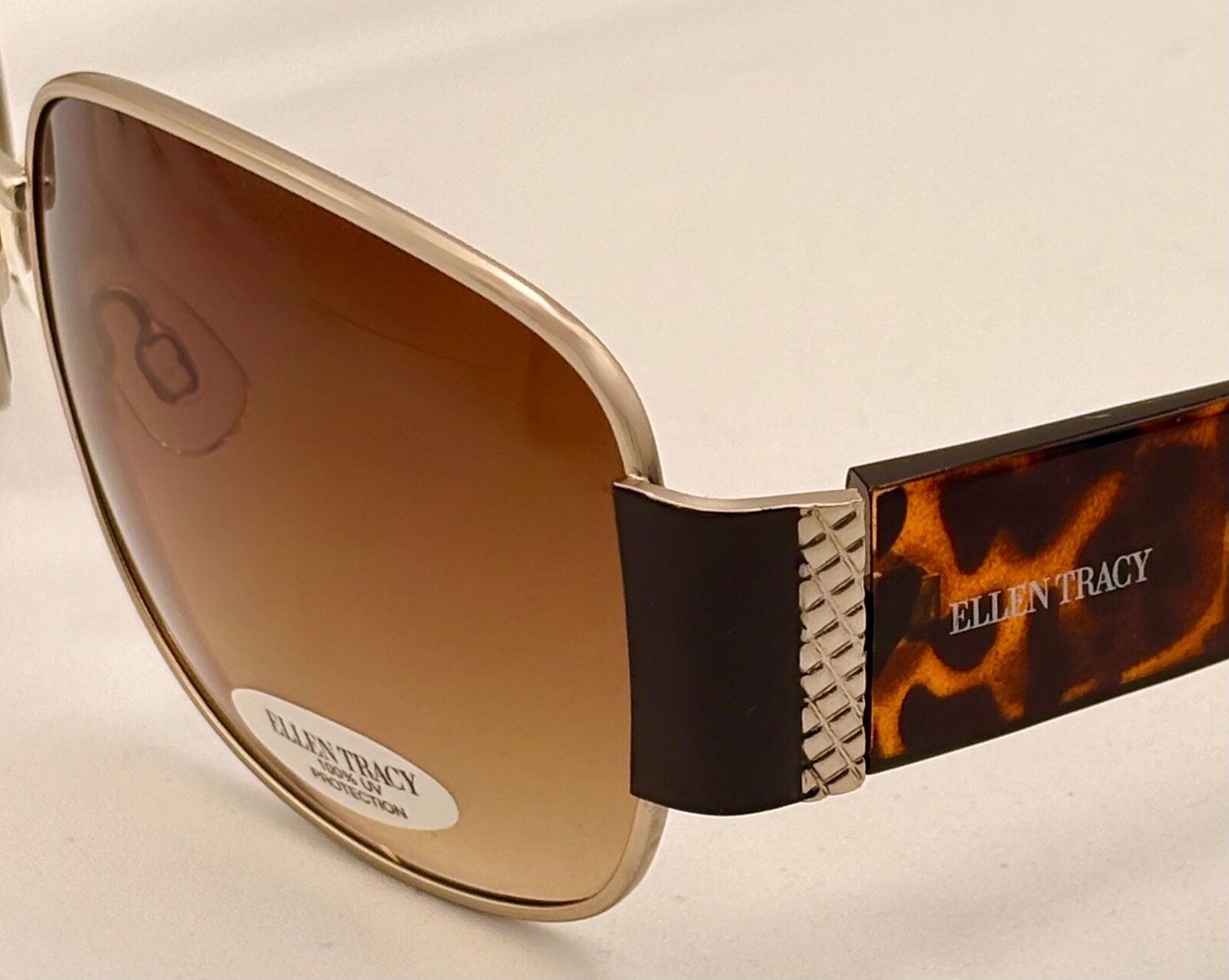 Ellen Tracy Womens Brown Gold Rectangle Metal Sunglass, Gradient Lens ET512. 1