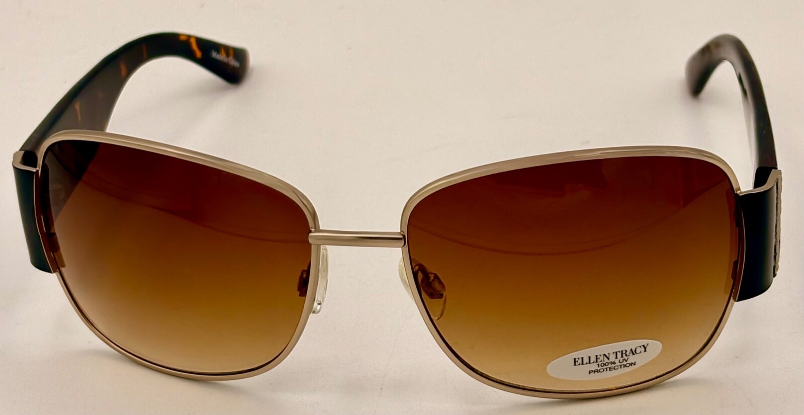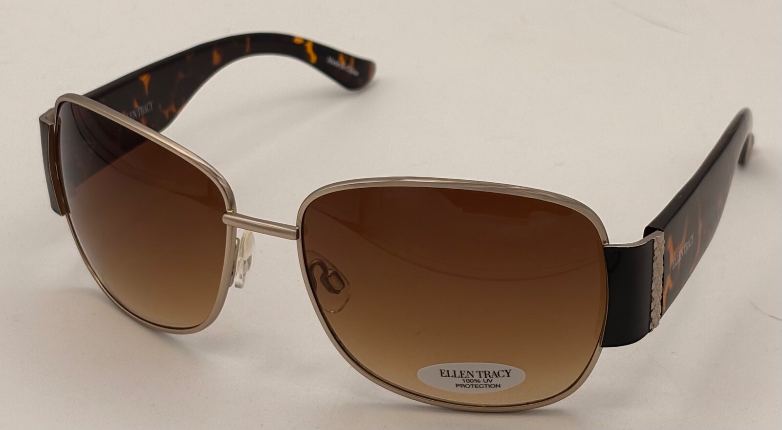 как выглядит Ellen Tracy Womens Brown Gold Rectangle Metal Sunglass, Gradient Lens ET512. 1 фото