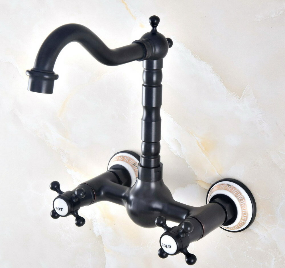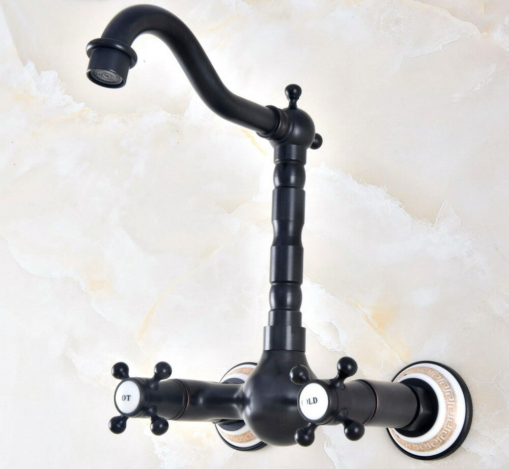 как выглядит Black oil Antique Brass Wall Mount Kitchen Faucet Bathroom Sink Mixer Tap 2nf468 фото