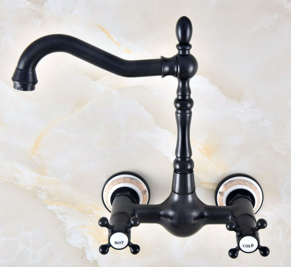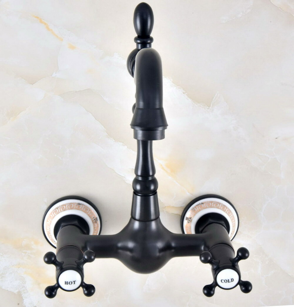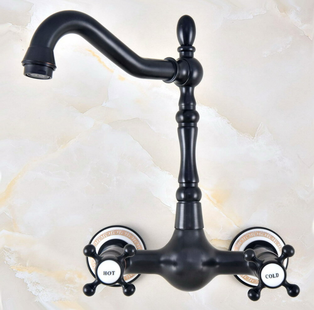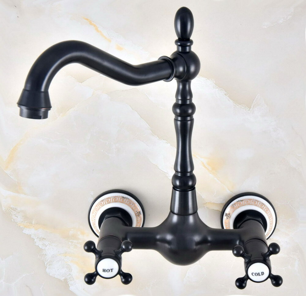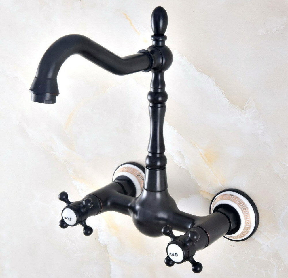 как выглядит Black oil Antique Brass Wall Mount Kitchen Bathroom Sink Faucet Mixer Tap 2nf466 фото