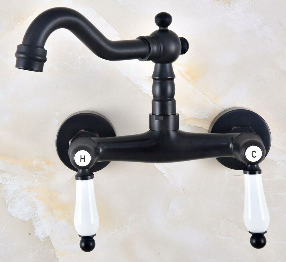 как выглядит Double Handle Oil Rubbed Brass Faucet Kitchen Bathroom Sink Mixer Tap 2nf823 фото