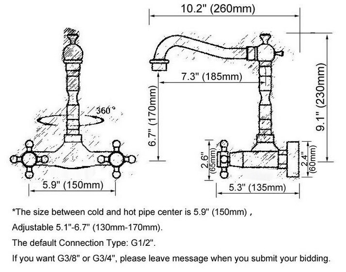 как выглядит Black oil Antique Brass Wall Mount Kitchen Bathroom Sink Mixer Tap Faucet 2nf872 фото