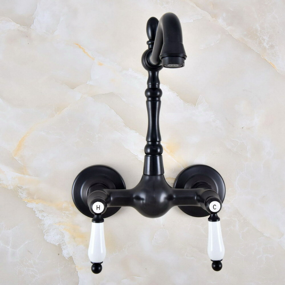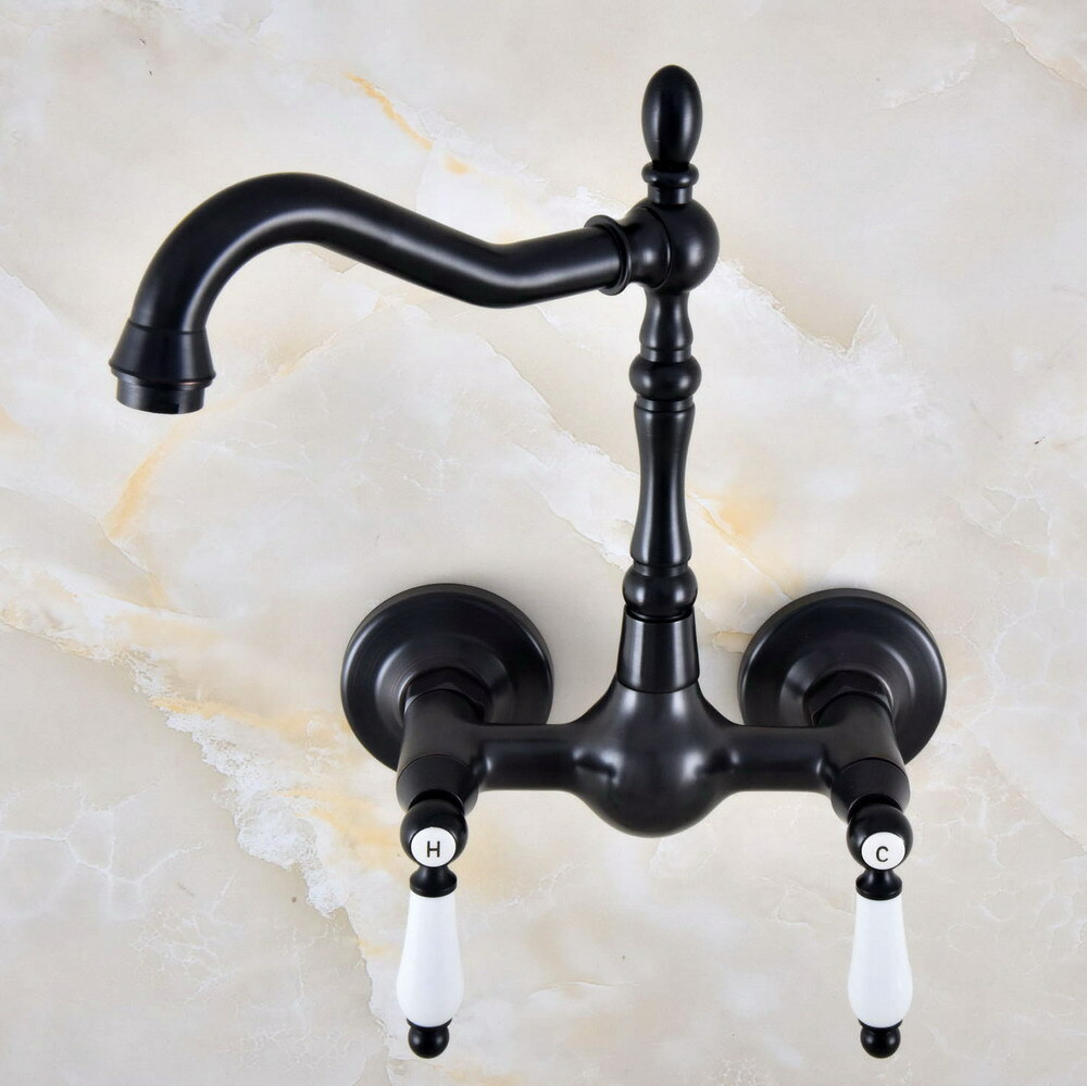 Black Oil Rubbed Brass Wall Mount Sink Faucet Bathroom Kitchen Mixer Tap 2nf870