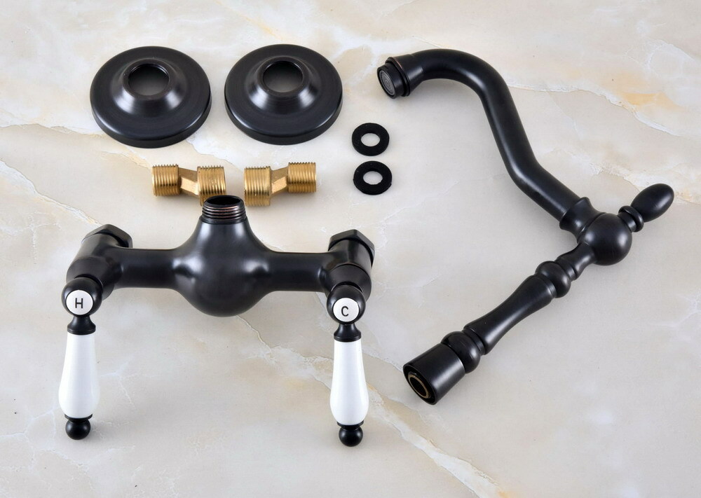 как выглядит Black Oil Rubbed Brass Wall Mount Sink Faucet Bathroom Kitchen Mixer Tap 2nf870 фото