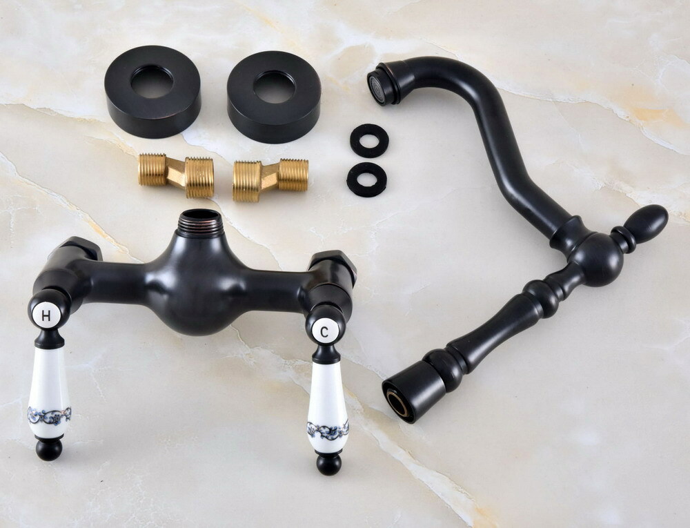 Double Handle Oil Rubbed Brass Basin Mixer Tap Kitchen Bathroom Faucet 2nf861